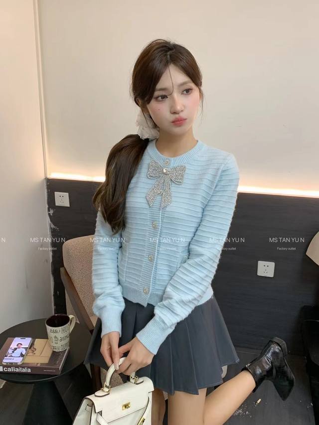 Designer Rhinestone 3D Bow Sweater Smlp DDD