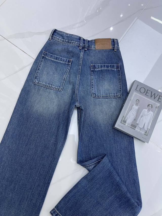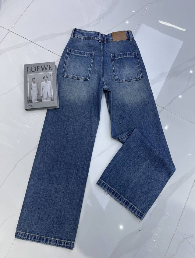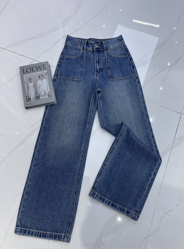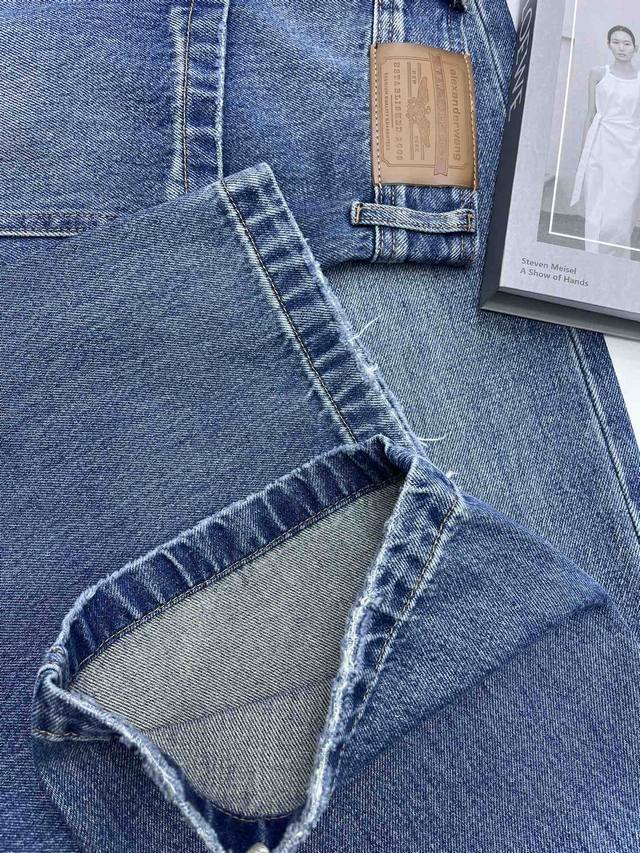 Detailed Photos DDD Alexanderwan* Retro-style straight-leg jeans, the washed blue denim has a high-end feel. The slightly wide waistband adds design and layering. The loose fit exudes a relaxed and effortless vibe, while the square pockets are a unique design element that flatters the figure and elongates the legs. Easily paired with various tops, it's a perfect piece for creating a retro-chic look. Smlxl DDD