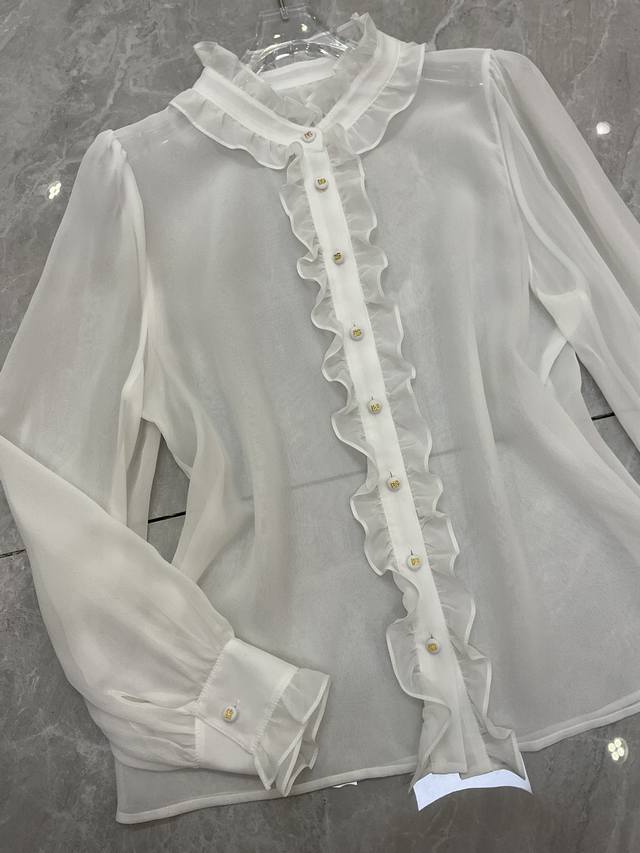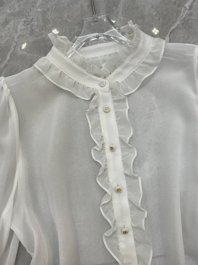 / Dg new white 12 momme silk georgette custom Dg button ruffle fashion shirt silk