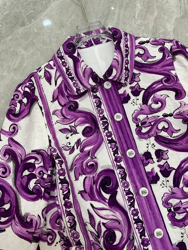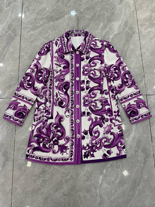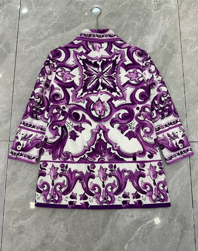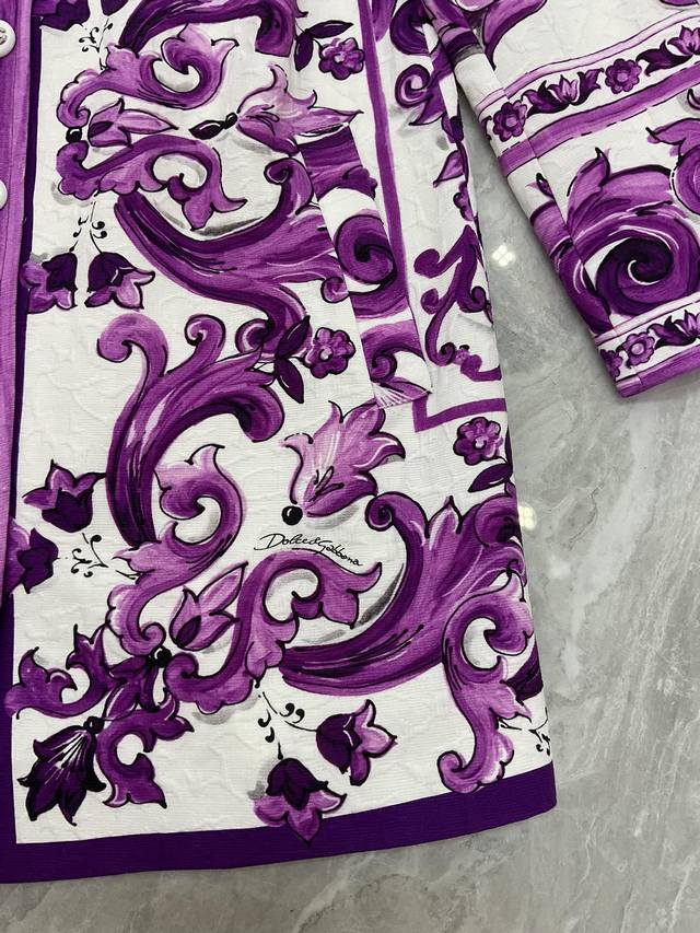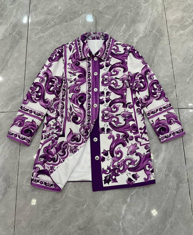 Dg purple pottery glaze rayon jacquard print loose fashion coat Smlxlxxl