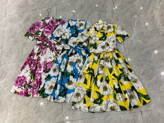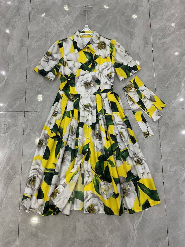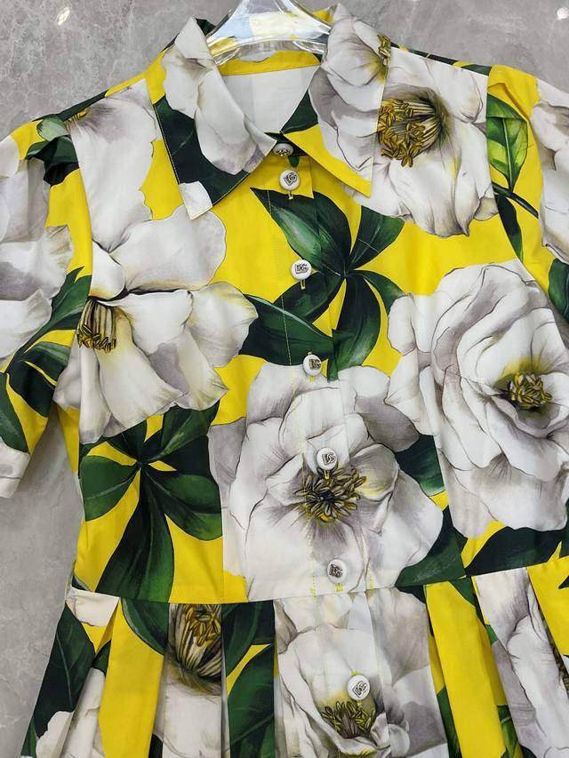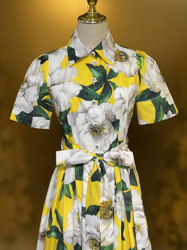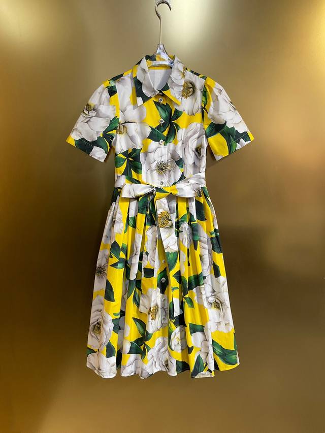 Dg Yellow Gardenia Cotton Short Sleeve Swing Shirt Dress Smlxlxxl