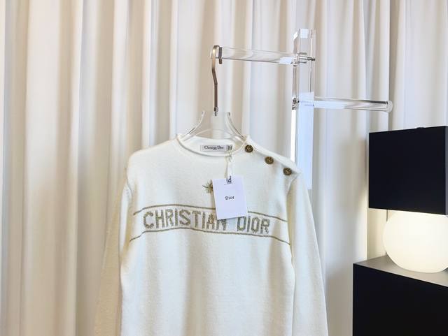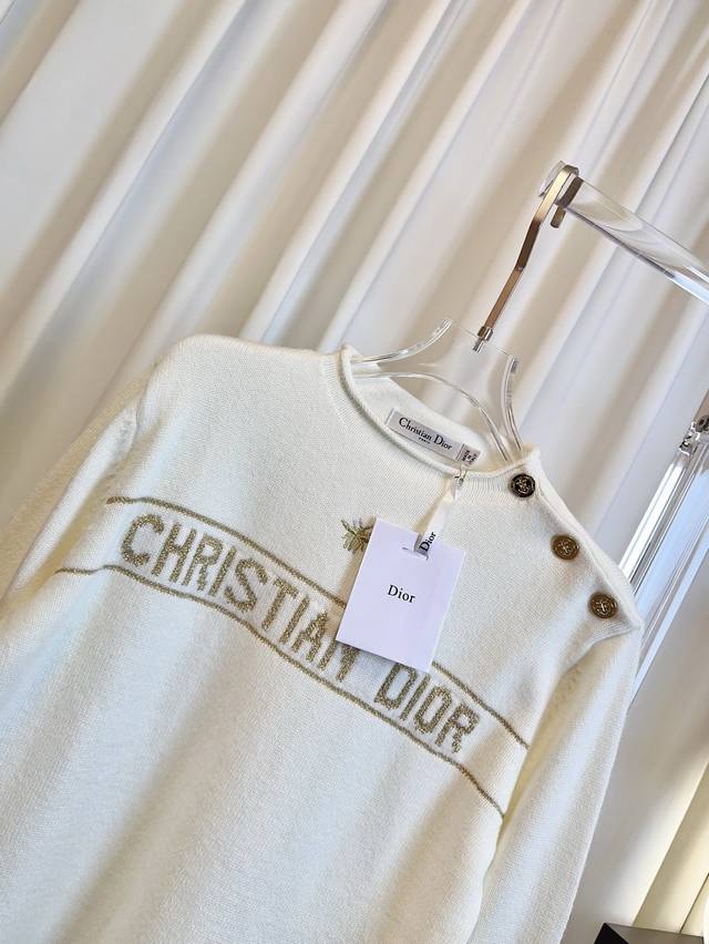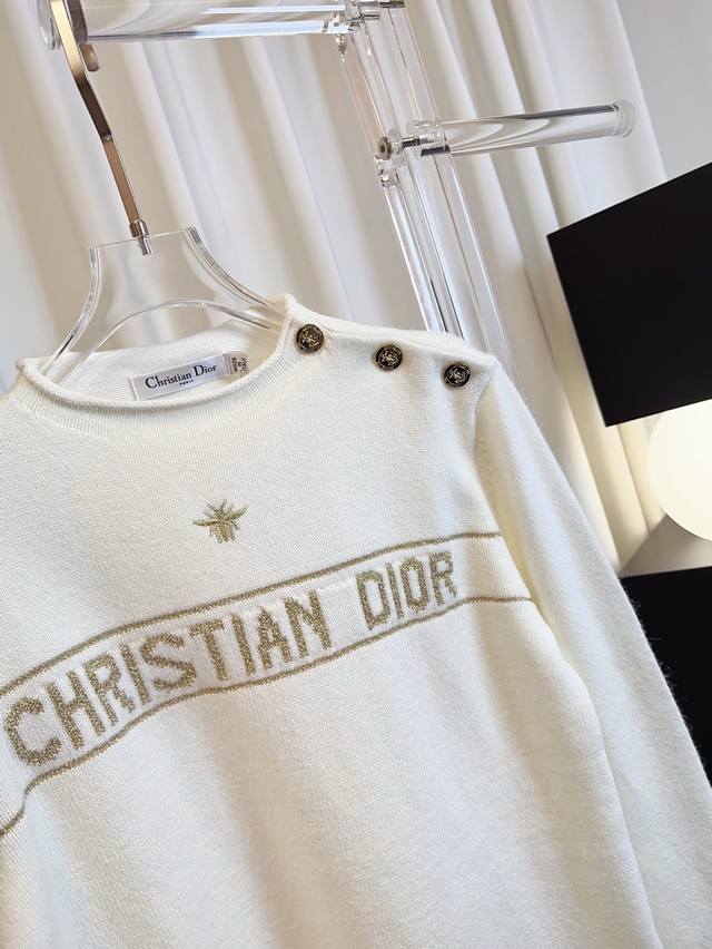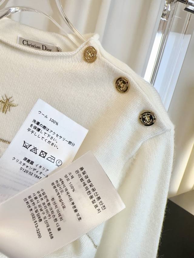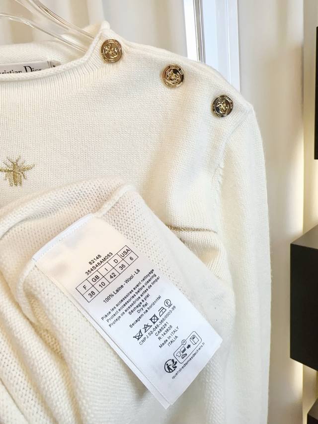 Di** New style gold thread jacquard embroidered bee logo top, custom-made wool fabric, soft, skin-friendly, comfortable and breathable. Features gold thread jacquard logo embellishment, shoulder button design, novel style, exquisite craftsmanship. A must-have for goddesses! Highest quality, welcome to compare. Beige Sml DDD