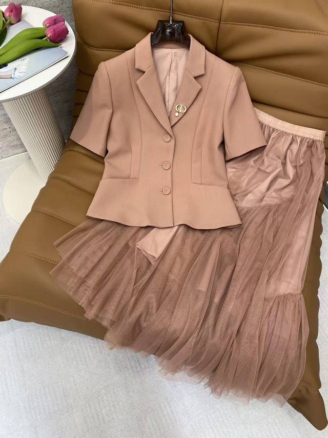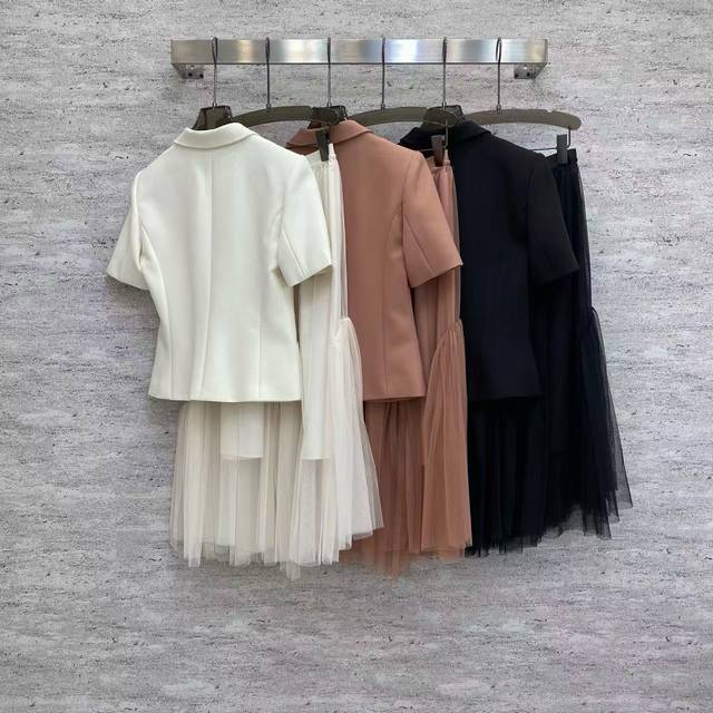 Di2026 Sp Premium Custom-Made Suit This elegant suit is absolutely stunning! The combination of a short-sleeved blazer and a mesh skirt is simple yet sophisticated, exuding femininity. Available in three colors, it's suitable for various occasions such as commuting and dates. The tailored fit enhances its elegance, while the accessories add a touch of refinement. DDD Colors: Black, Pink, White Fabric: Premium Woven + Premium Mesh Fabric Smlxl . DDD