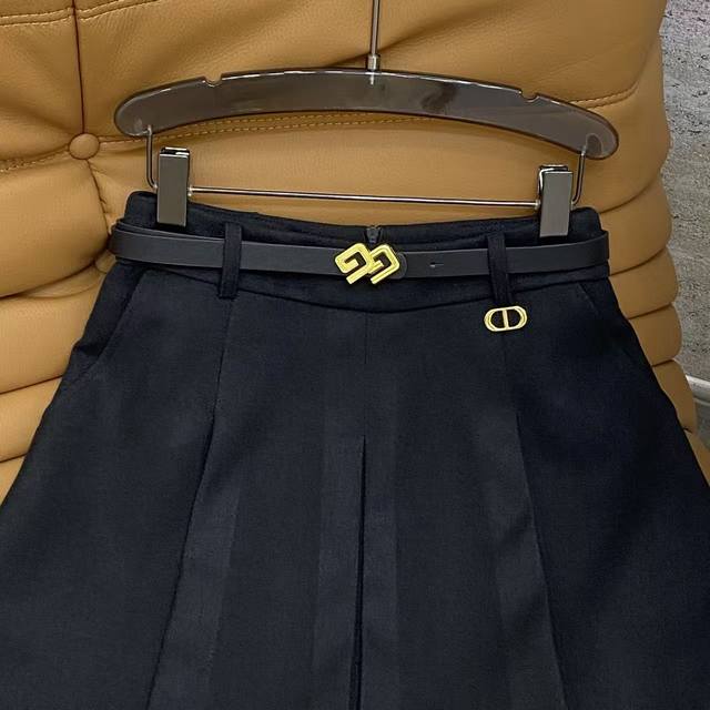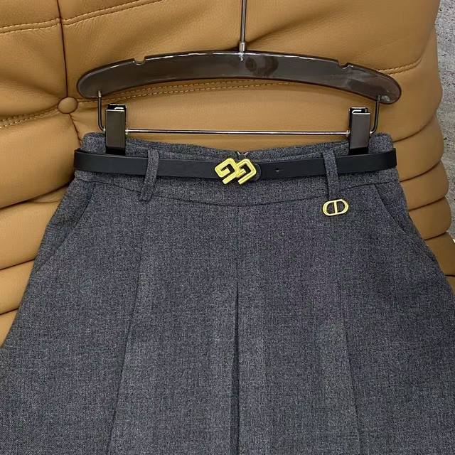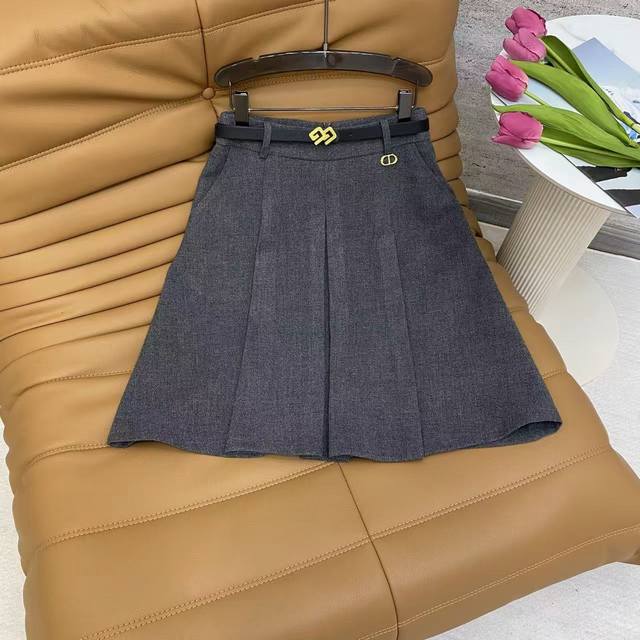 Di2026 Sp Premium Midi Skirt. This pleated midi skirt features a metal buckle belt. The high-waisted design elongates the legs. Available in simple and versatile gray and black, the crisp fabric adds a touch of quality. Suitable for commuting, school, and various other occasions. Colors: Black, Gray. Fabric: Premium Tr Suit Fabric (Smlxl).