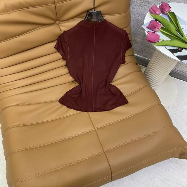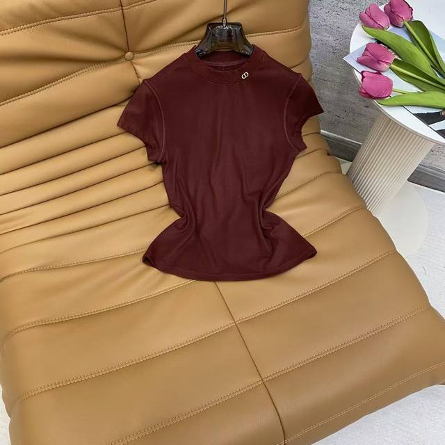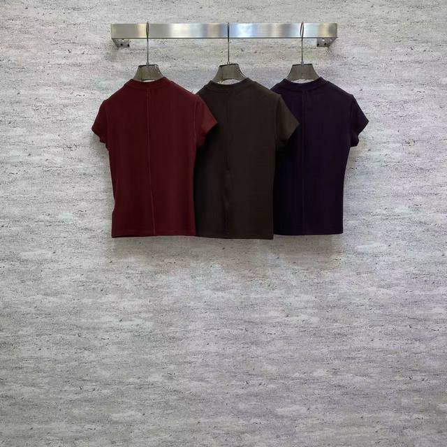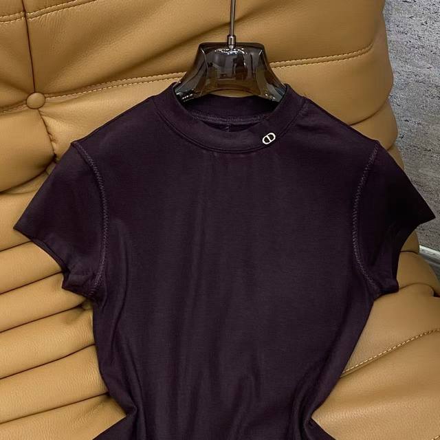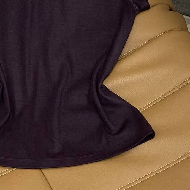 Di2026 Sp Premium T-Shirt This wool-cashmere blend cotton T-shirt is soft yet structured, featuring a mock neck with delicate details. Available in multiple colors, it looks great worn alone or layered. Colors: Burgundy, Brown, Purple Fabric: Wool-cashmere blend cotton Smlxl