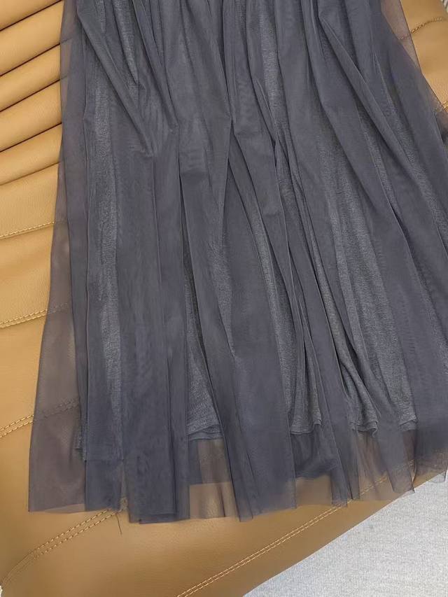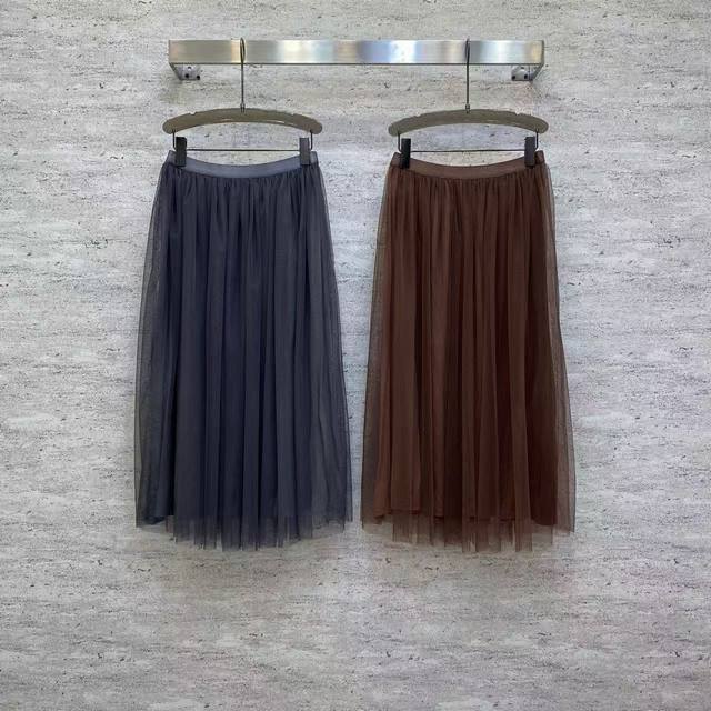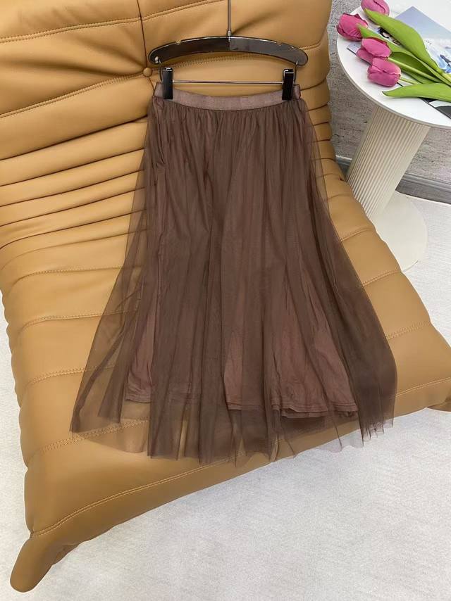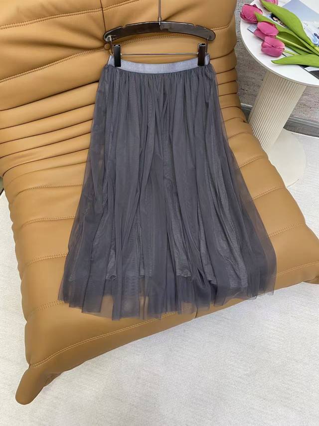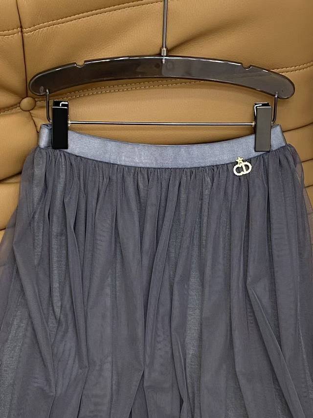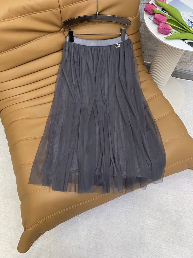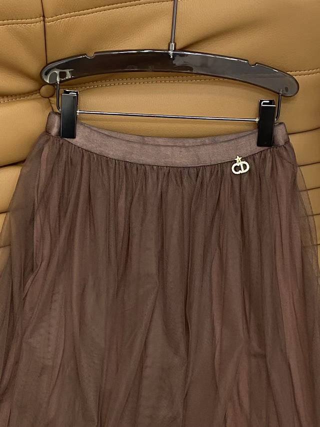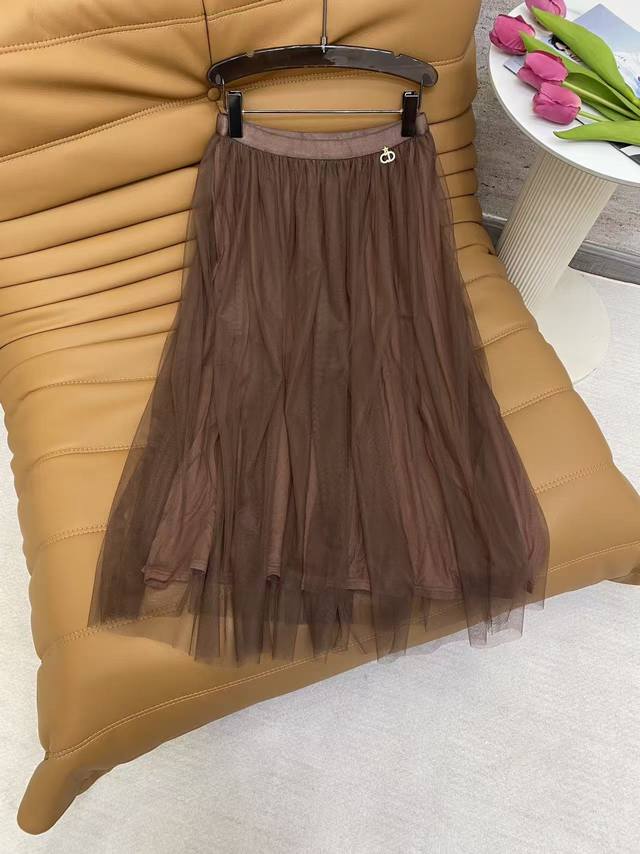 Di2026 Sp This premium midi skirt is made of high-quality mesh fabric. The grey and brown two-tone color is gentle and elegant. Metal buckles adorn the waistband, and the flowing skirt hem exudes a romantic and fairy-like charm. Colors: Brown, Grey Fabric: Premium Mesh Fabric (Smlxl)