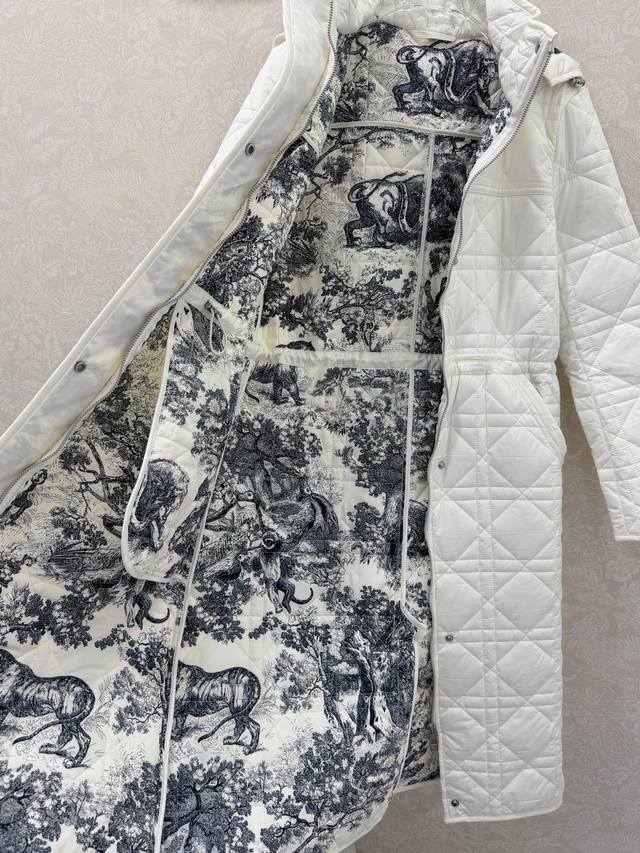 Dio* 2025 Autumn/Winter New Arrival: Princess Diana Cannage Hooded Long Cotton Coat with Topstitching. The classic jungle animal print lining is very eye-catching and visually striking, highly fashionable. It easily showcases youthful personality without looking old-fashioned. It's stylish, windproof, and waterproof, reflecting a high-end design concept. The clearly engraved metal snaps add a lot to the overall look. A classic style, highly recommended!! 3 colors, 6 sizes: S, M, L, X, L, XXX, LB. DDD