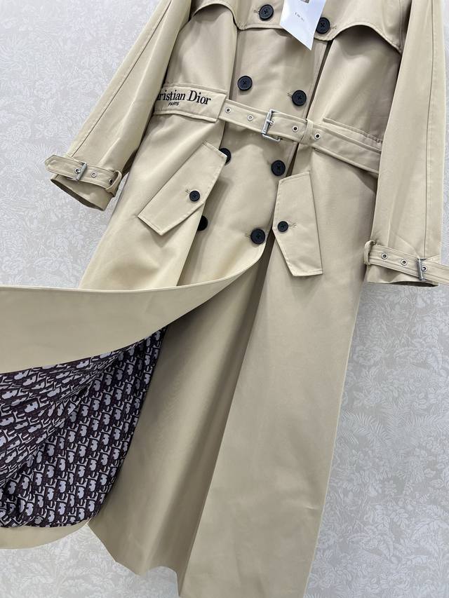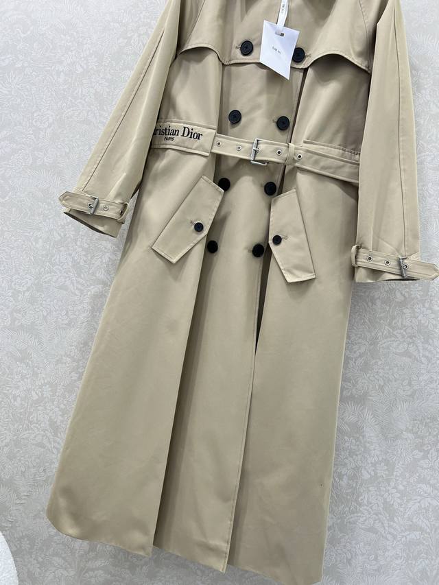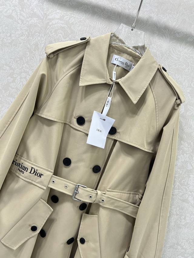 Dio* 2025 Autumn/Winter New Lapel Belt Trench Coat - A classic that's sure to catch your eye! The cut is unbeatable! Features include an invisible belt, embroidered lettering, double-breasted design, a cape-like effect, custom-made epaulettes and sleeve straps. The belt is included and can be worn loose or fitted, making it perfect as a dress without overwhelming your height. It exudes a sophisticated, effortless style, requiring no elaborate styling. Every detail radiates elegance! The details are impeccable; the lining is custom-made jacquard logo cotton, not the cotton used in typical trench coats. The fabric feels silky smooth. The entire trench coat is 100% authentic! A must-have for your spring, autumn, and winter wardrobe!! The color is understated yet sophisticated, reminiscent of top luxury brands