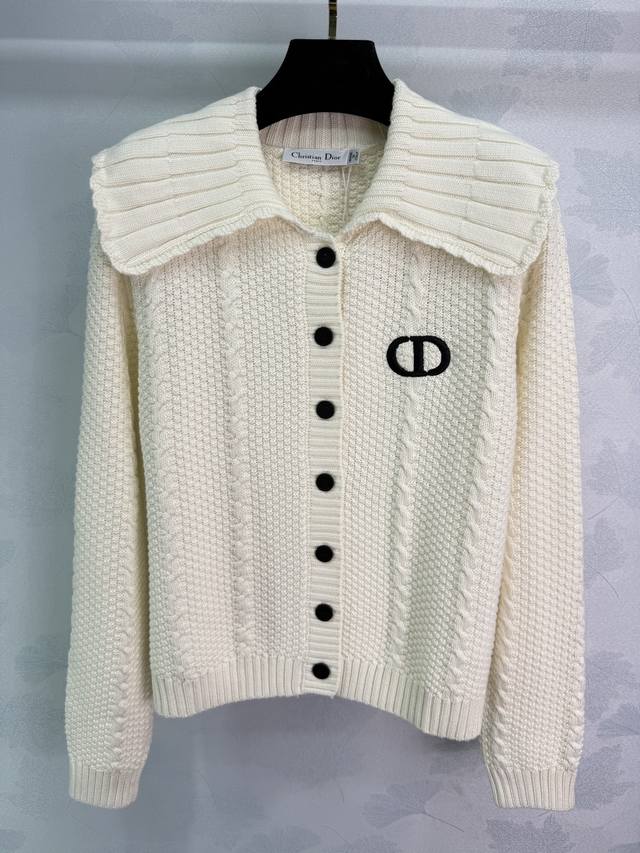 Dio* 2025 Autumn/Winter New Peter Pan Collar Knitted Long-Sleeve Cardigan! Made with custom wool blend yarn, the fabric is delicate, soft, comfortable, and breathable. The ribbed collar and lace trim create a slimming effect. The brand logo (Cd) embroidered lettering on the chest adds a touch of sophistication and visual appeal. A must-have for everyday wear, commuting, and dates! Available in 2 colors and 3 sizes: S, M, L, T226B, DDD