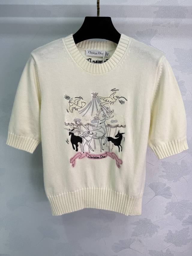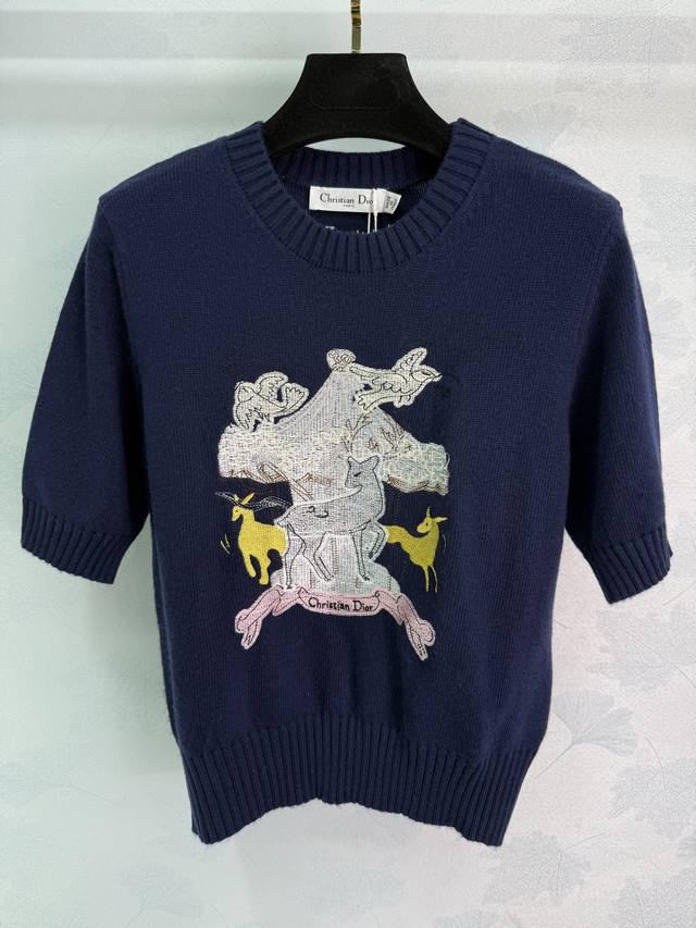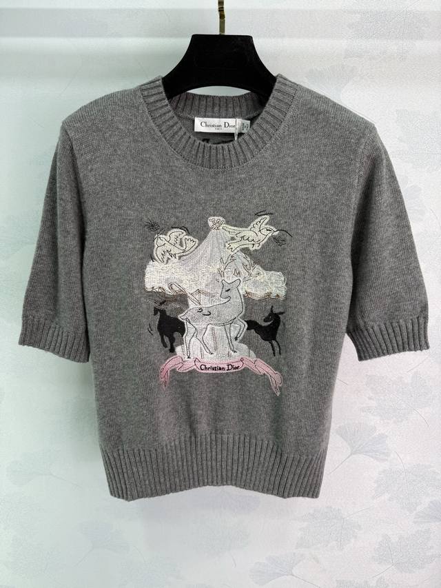 Dio* 2025 Early Autumn New Round Neck Embroidered Knit Short-Sleeve T-Shirt! Made with custom wool blend yarn, this high-quality, comfortable, and soft round neck short-sleeve shirt features a dense knit for warmth and wind protection. Wide ribbed trim on the neckline and cuffs echoes the hem. Contrasting animal embroidery adorns the chest, and the brand's logo adds a touch of sophistication and style. The regular fit is timeless and versatile! Available in 3 colors and 3 sizes: S, M, L, D, D.