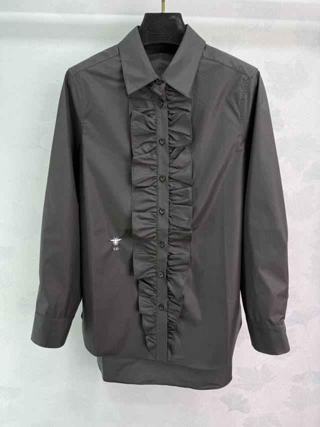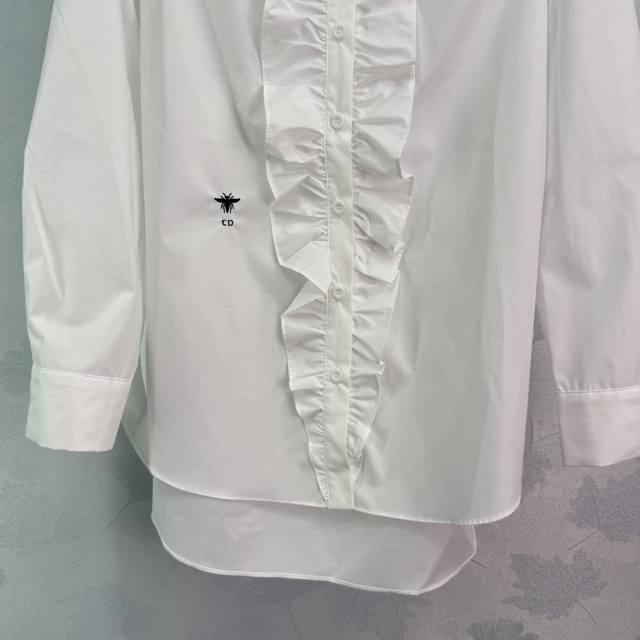 Dio* 2025 Early Autumn Newest Collection! Lace-trimmed lapel long-sleeved shirt! Custom imported twill cotton material, comfortable and delicate. The front is decorated with a ruffled lace trim design to add a sense of layering. A single embroidered Cd bee logo adorns the waist, showcasing the brand's style. The fabric and trim are specially developed. The lapel long-sleeved shirt has a clean, slim fit, exuding a refined feel. A basic shirt suitable for everyday commuting and vacations, easily creating a chic look! 2 colors, 3 sizes: S, M, L, DDD