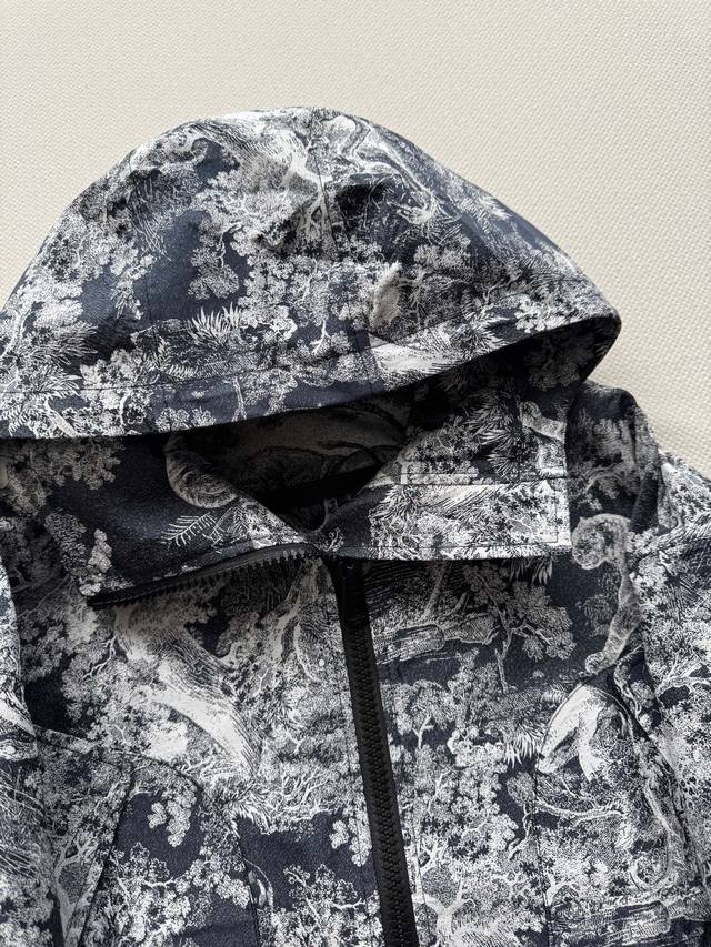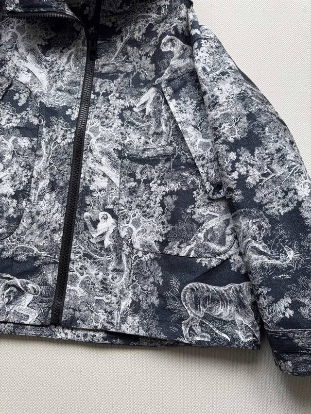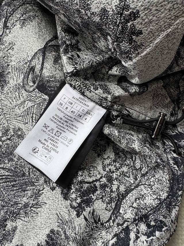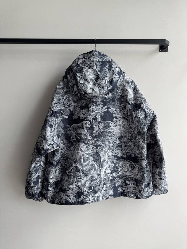Dio* 2025 Early Fall new Rue jacquard hooded loose-fitting jacket in new season colors. Customized high-tech jacquard fabric features all-over floral and animal prints for a crisp, stylish feel. The jacquard pattern is clear and vivid. The zippered hooded loose-fitting jacket features a crisp, three-dimensional shape and is embellished with precise CD bee embroidery at the waist. The oversized silhouette creates a flattering effect, creating a slimming effect. Pair with the matching culottes for a classic look! In stock Sml.