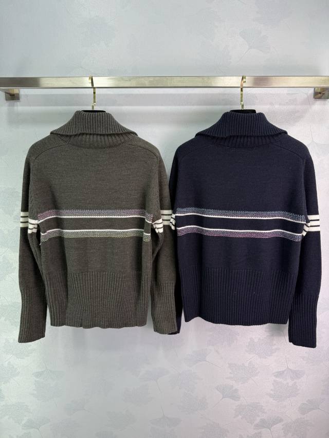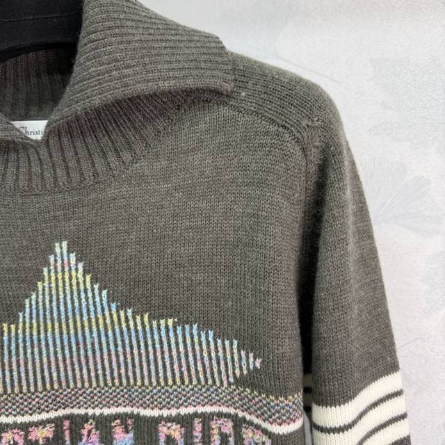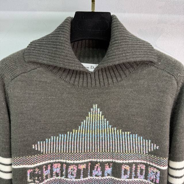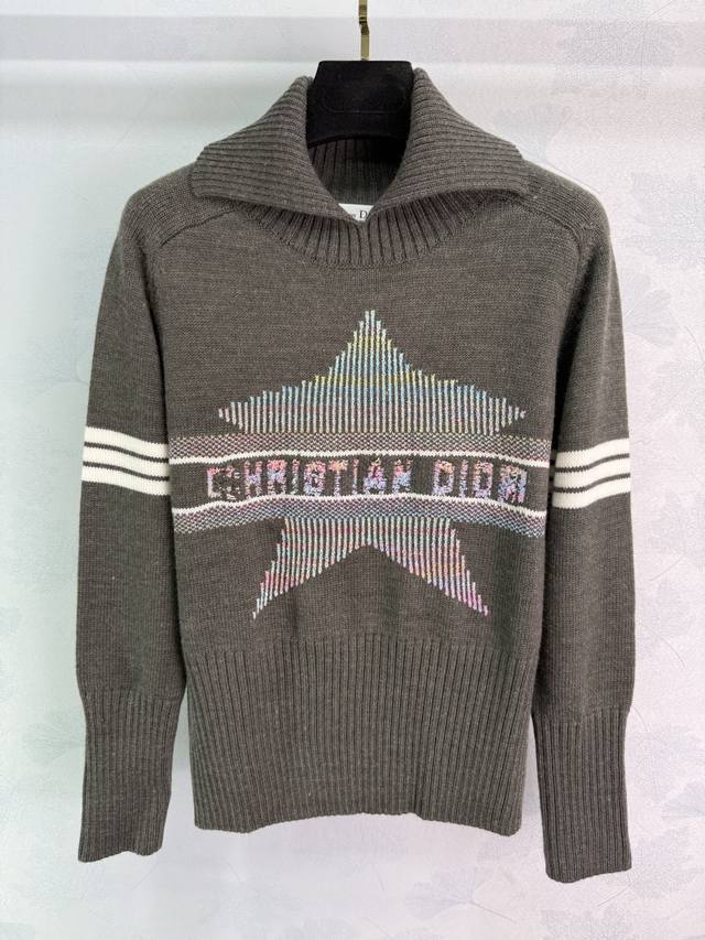 Dio* 2025 Fall/Winter new color-block logo lapel knit top. Custom Yb knit material, soft texture. Gradient color star and letter crochet pattern on the chest highlights high-end positioning and fashionable tone. Straight shoulder style, regular fit, creating a gentle and tranquil artistic atmosphere! 2 colors, 3 sizes Sml