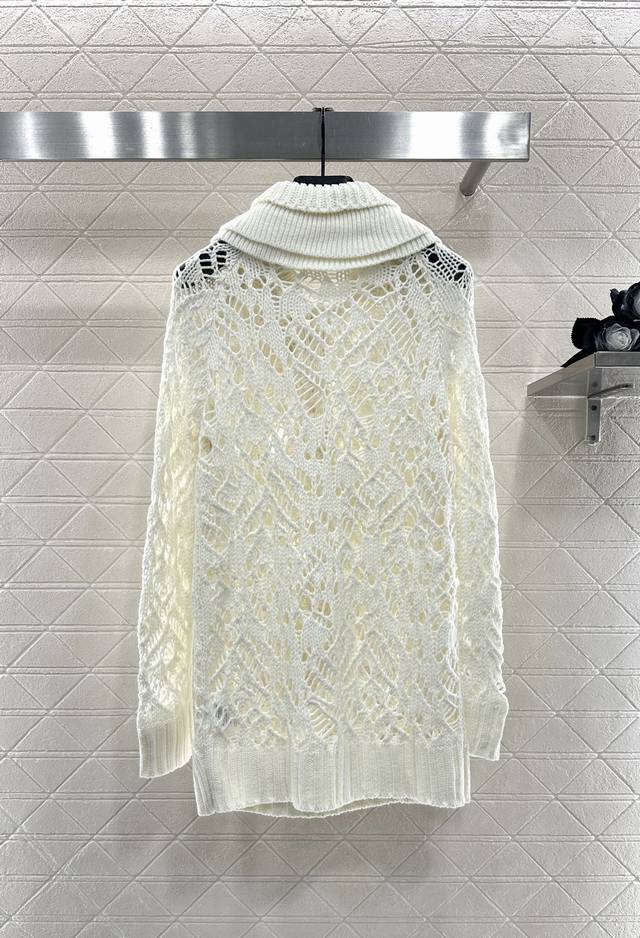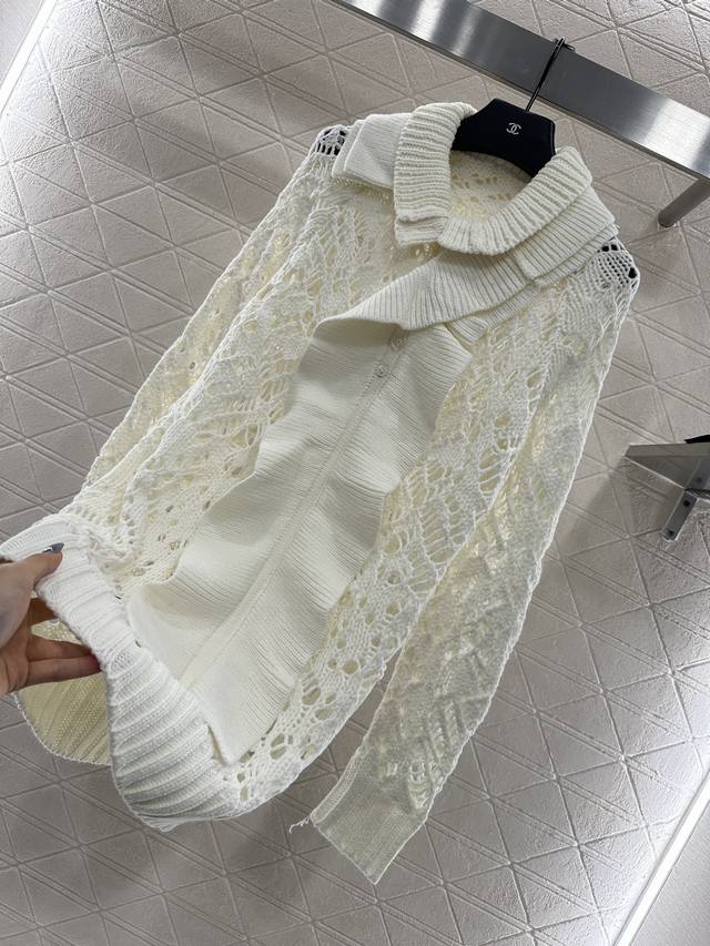 Detachable Ruffled Lace Knit Sweater. Made with custom Yb silk and wool yarn, this sweater is comfortable, drapes beautifully, and features a long, lace-trimmed design. The all-over openwork crocheted details are gorgeous and intricate. The straight cut is comfortable and flattering, easily creating a good proportion and offering minimal body type restrictions. The ruffled lace trim at the neckline can be detached to serve as a front ribbon, allowing for multiple styling options for a relaxed and fashionable look. Suitable for commuting and dates, this sweater is youthful and chic. Custom fabrics and accessories, please ensure you choose the high-quality version.