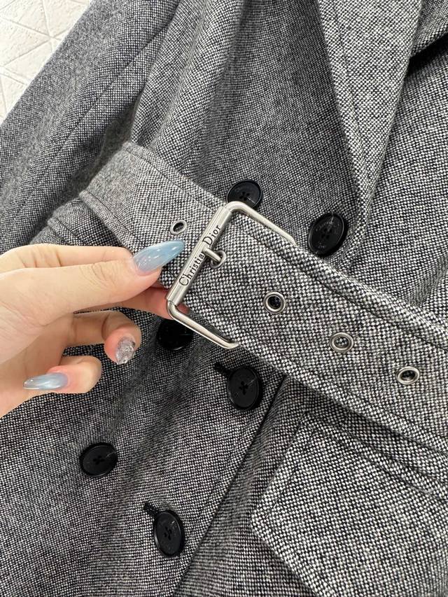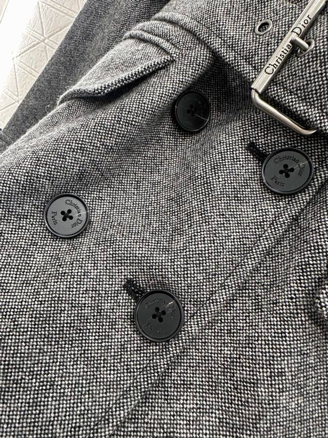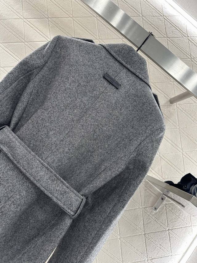 Custom Yb Imported Wool Coat, Excellent Texture and Quality, Lapel Lapel Straight Shoulder Coat, Timeless Simple Design, Double-Breasted Opening, Embellished Belt at the Waist, Stylish and Sophisticated Atmosphere, Symmetrical Cuff Belts Add Layers and Showcase Brand Style, Gray-Black is Stylish and Versatile, Suitable for Any Style, Straight H-Line, Flattering and Forgiving Figure, Leather Letter Label on the Back Collar for a High-End Look. Custom Fabrics and Accessories, High-Quality Version