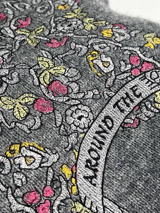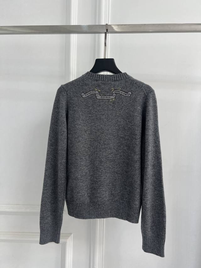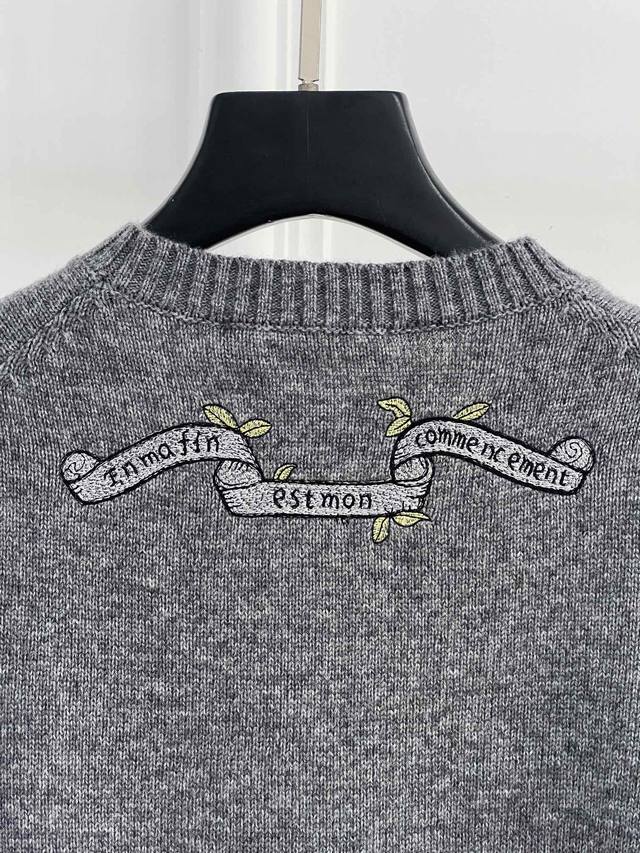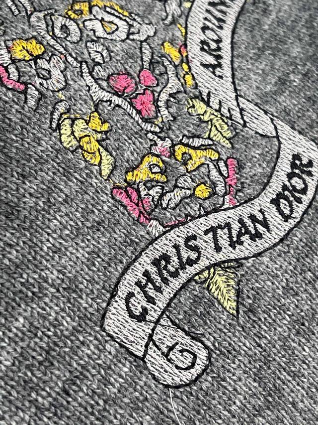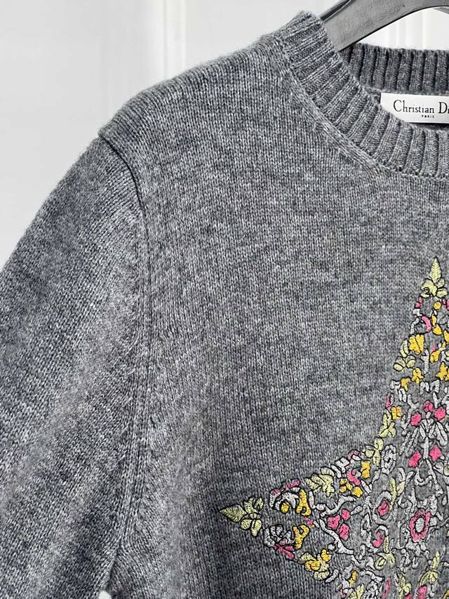 Dio 25 Autumn New Round Neck Embroidered Pullover Sweater Custom Yb Cashmere and Wool Yarn Woven with High-Quality Texture, Comfortable and Soft Round Neck Long Sleeve Sweater Cut Wide Ribbed Edges on Neckline and Cuffs Echoing the Hem Large Area Floral and Leaf Elements Crochet Embroidery Outlining Five-Pointed Stars Rich Colors and Elegant Style Interspersed with Floral Lettering Highlights High-End Position and Fashion Tone Regular Shoulder Fit Creates an Artistic Atmosphere, Making the Style More Timeless and Versatile DDD Sml DDD