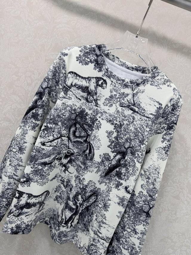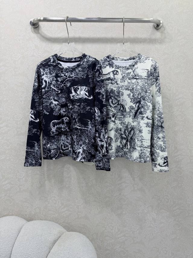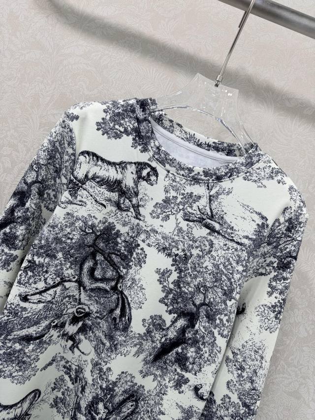 Dio *25 New Arrival: Long-Sleeved Base Layer Top with Jungle Animal Tiger Print, Custom Yb Fabric. The fabric is delicate, warm, and comfortable to wear. The newspaper print logo highlights the brand's style. The material is stretchy, creating a slimming visual effect. The logo on the collar and chest instantly transforms it into a fashionable item, showcasing a high-end style. It looks great worn alone or as an inner layer, fashionable, youthful, and chic. 2 colors, 3 sizes: Smlb. DDD Ddd