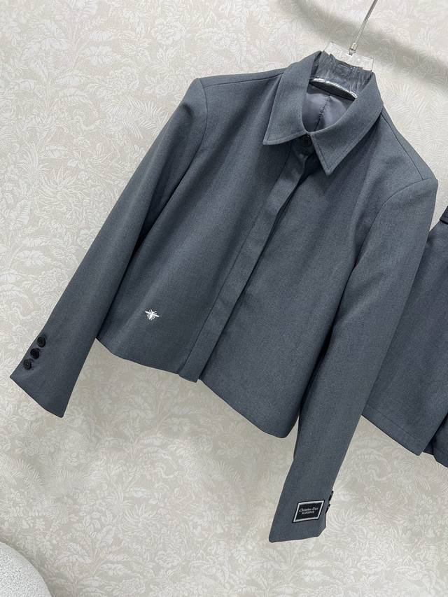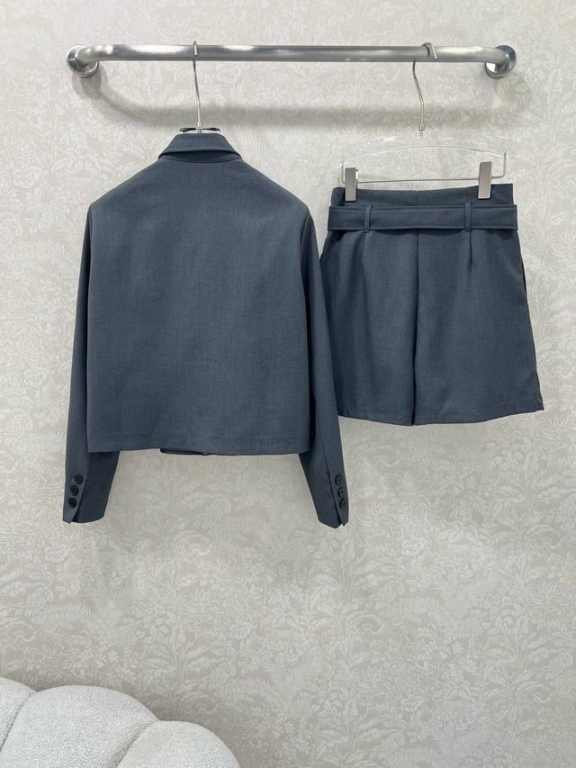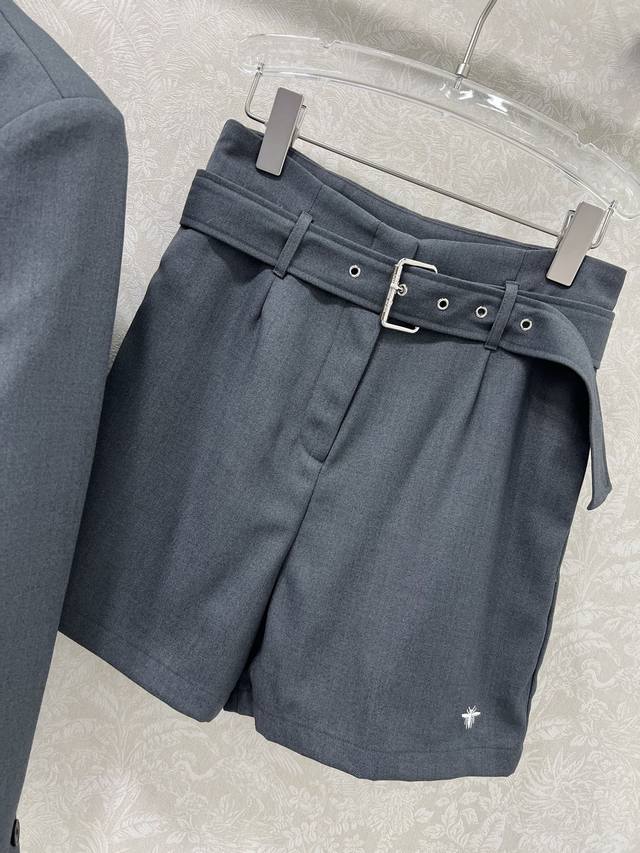 Dio* 25 new style jacket and shorts combo. The jacket features a three-dimensional cut and exquisite workmanship throughout. The single-breasted jacket has bee embroidered cuffs and logo patches on the sides. The top is incredibly flattering and slimming. The shorts are paired with a natural fabric belt. The A-line silhouette flatters the legs, creating a simple yet stylish look. It's a versatile and elegant everyday piece. The colors are stunning, and the fabric is premium and textured. Available in 3 sizes (Sml B.
