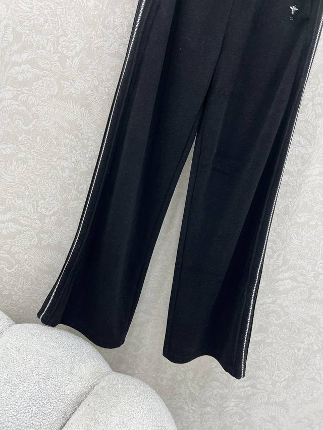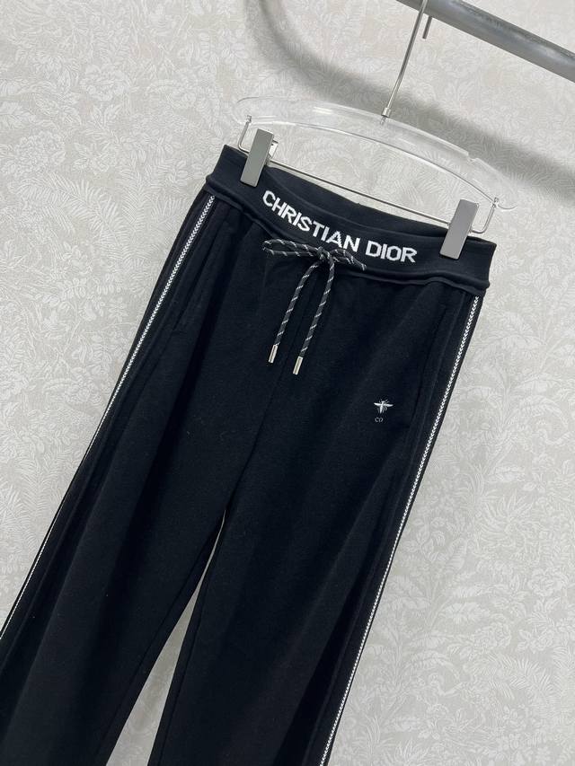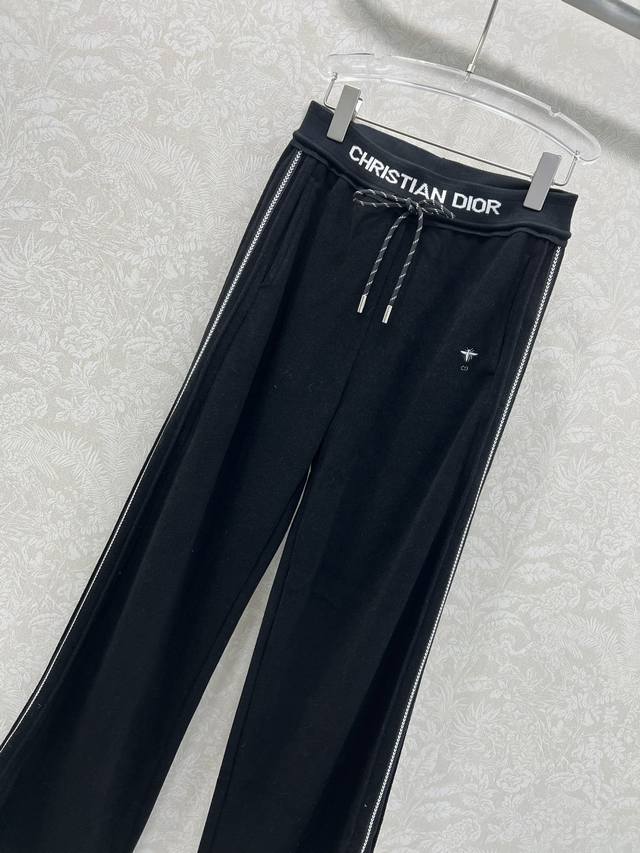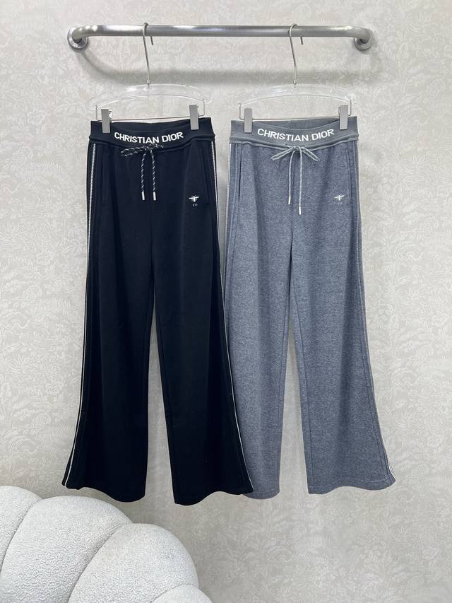 Dio* 25 New Style Solid Color Wide-Leg Pants with Letter Stretch Webbing Waistband, Contrasting Logo Stretch Webbing Waistband, Classic Leather Label Decoration on the Body, Side Stripes, Visually Perfect Hip-Slimming Design, Overall Elongating Body Proportions, Casual Straight Leg Pants, Silky Comfortable, Versatile Item! High-waisted wide-leg pants with a perfectly slimming fit, stylish and sophisticated! Elegant and sophisticated, super slimming. 2 colors, 3 sizes. Smlb.