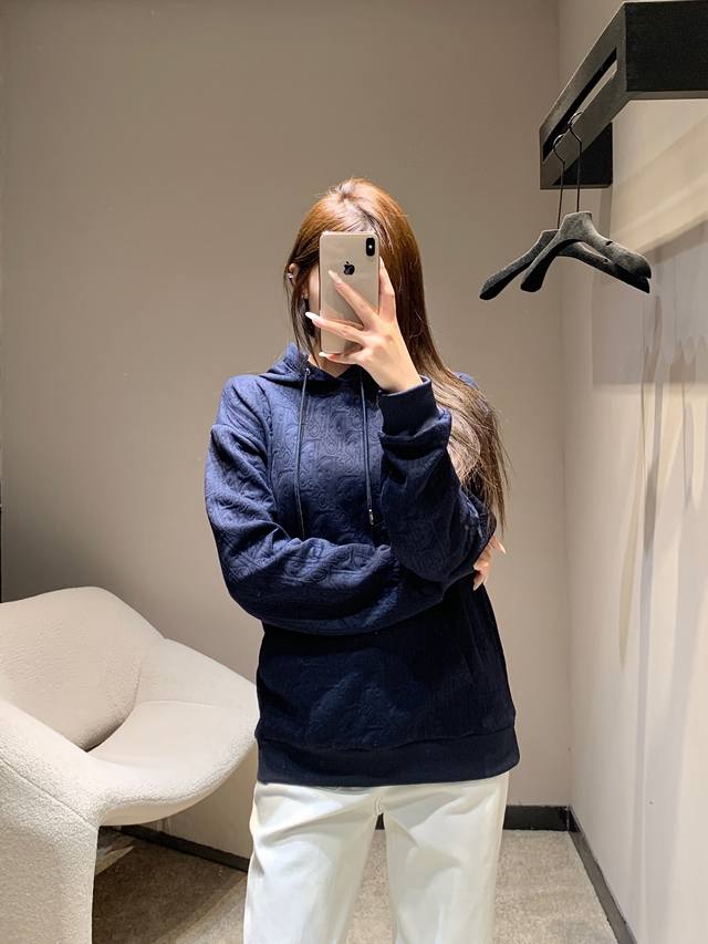 Dio* 25Fw Autumn/Winter New Letter Jacquard Hooded Sweatshirt | Exclusive High-Quality Production! Made from premium soft, heavyweight fabric, featuring a 3D jacquard weave and an all-over print of the brand's signature subtle pattern. The understated color palette reveals a delicate texture. The classic hood and drawstring design retains its casual appeal, while the relaxed fit flatters all body types, offering both comfort and a relaxed feel. Available now in sizes S, M, L, D.D.