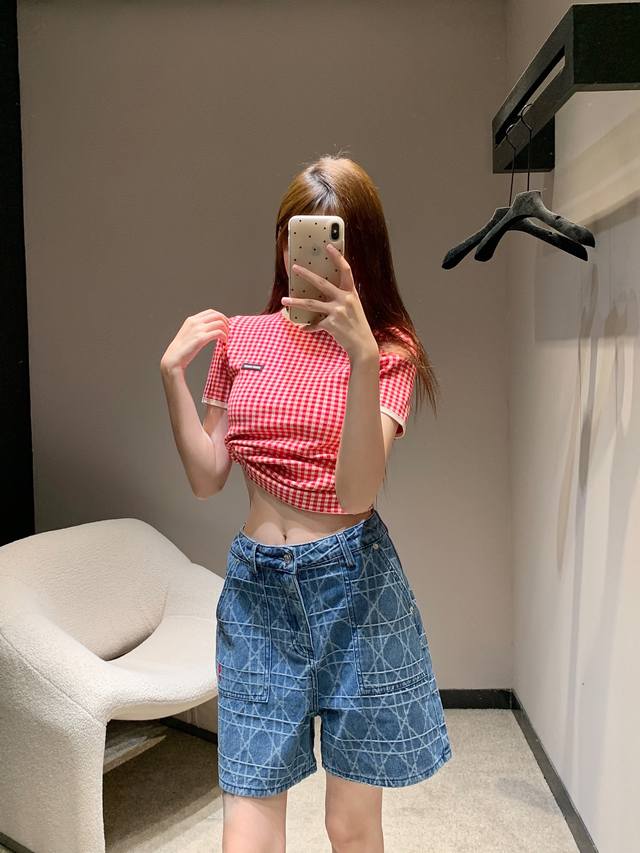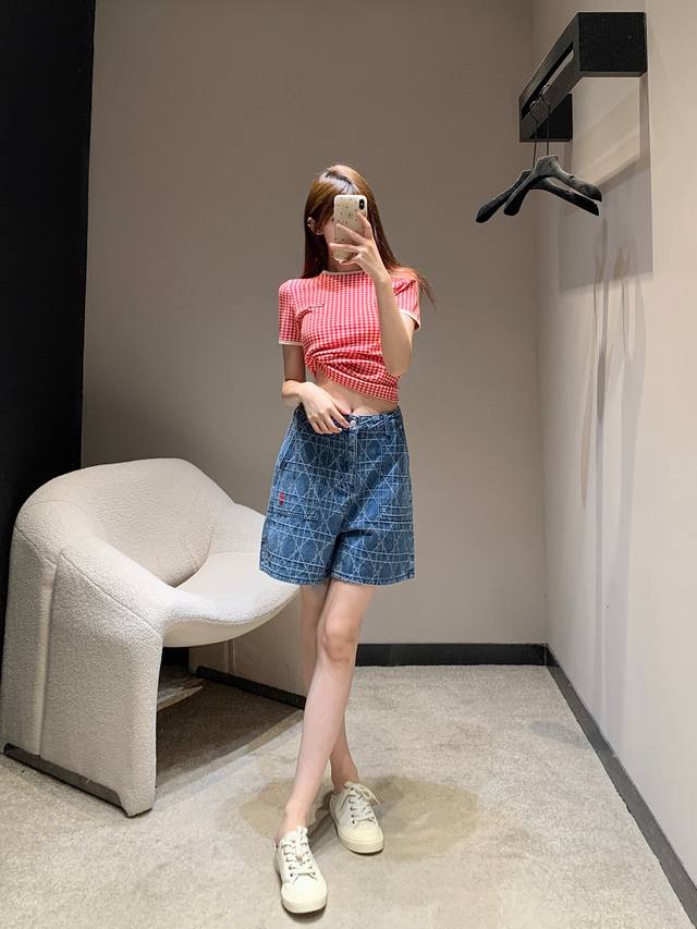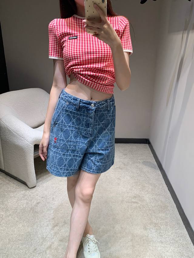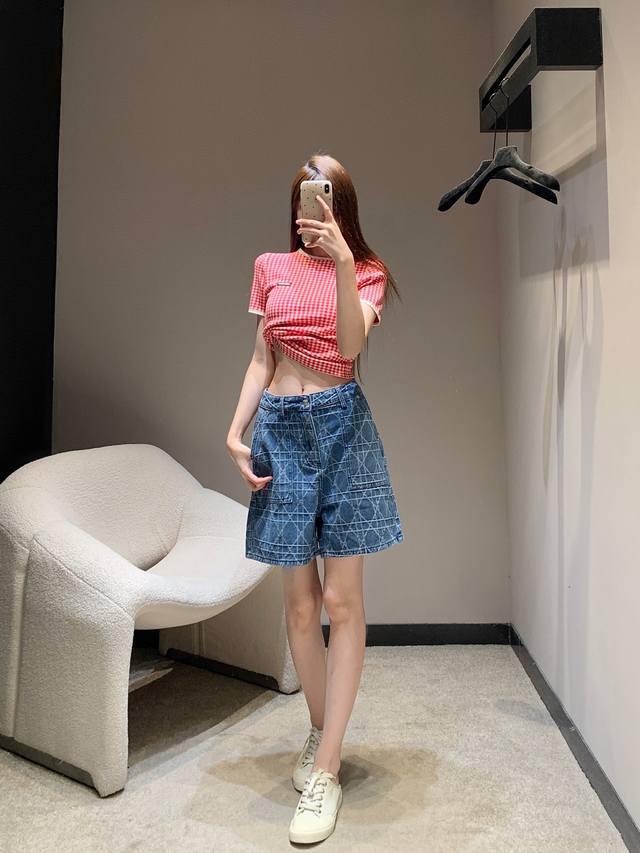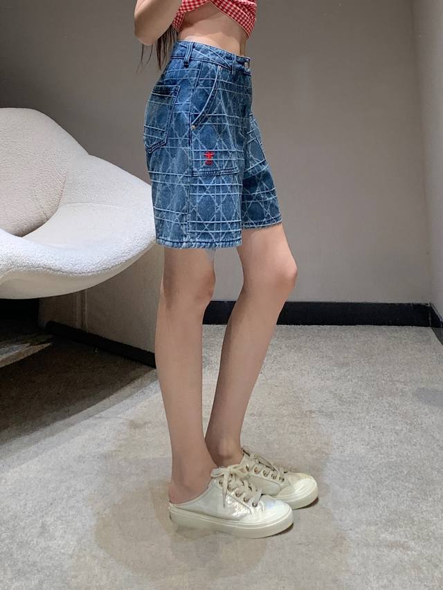 Dio* 25Fw Early Autumn New Red Embroidered Diamond Denim Shorts | Exclusive High Edition! Made of pure cotton denim fabric, red embroidered bees, CD craftsmanship details, high waist style, fashionable and high-end style, shorts style, very good-looking, slimming and leg-lengthening, versatile tool, suitable for all body shapes! Available now SML