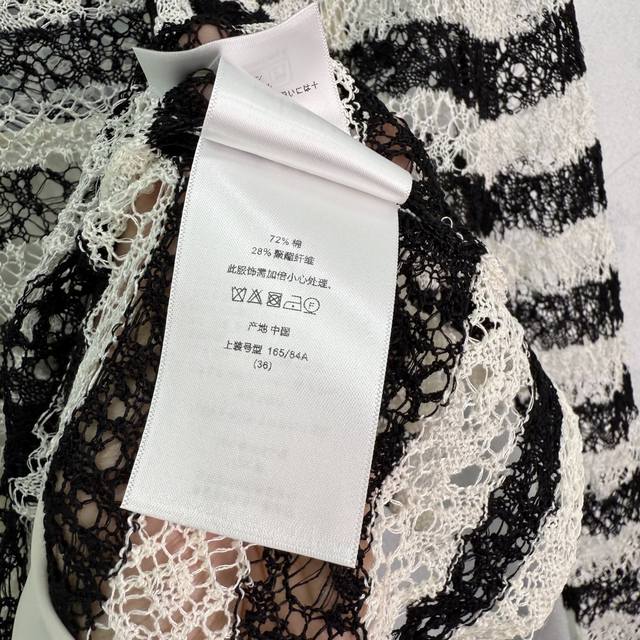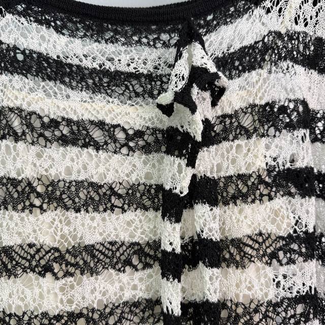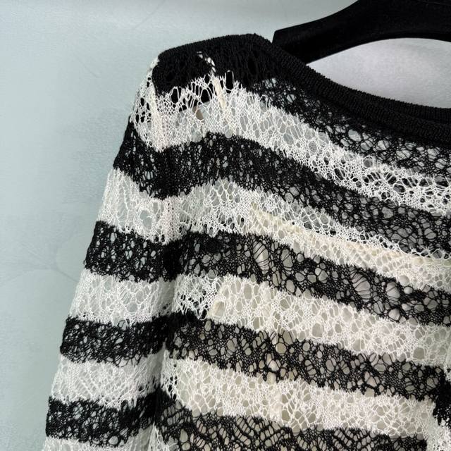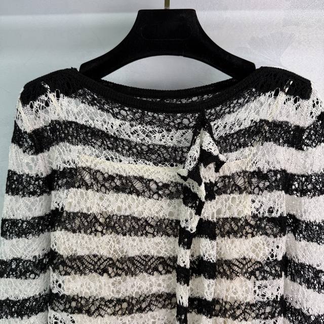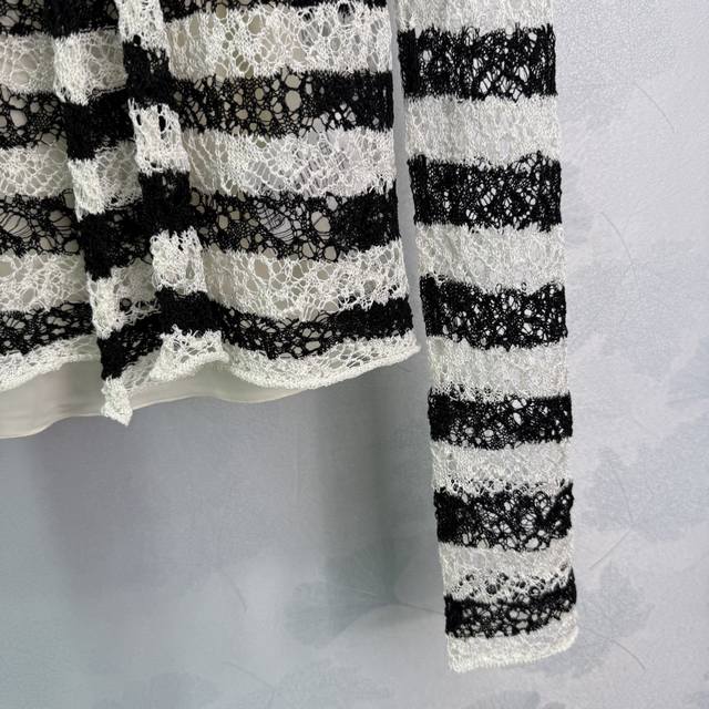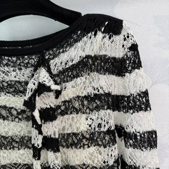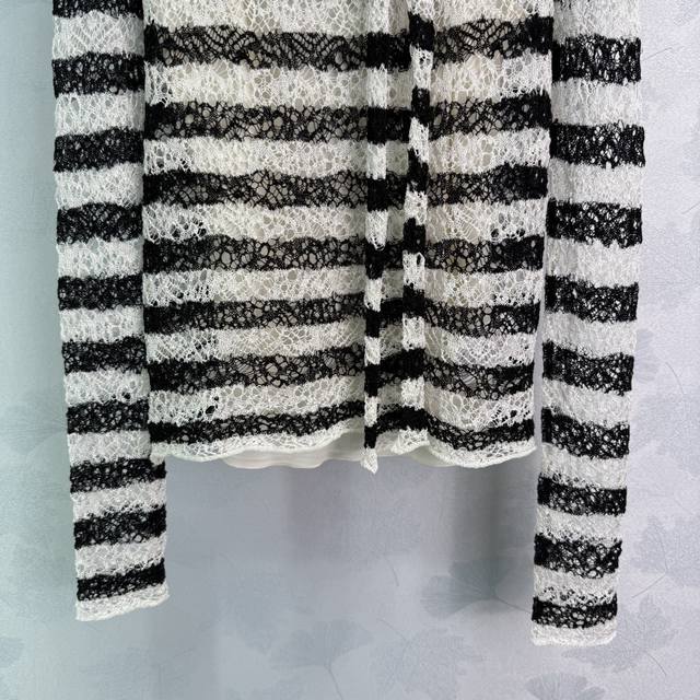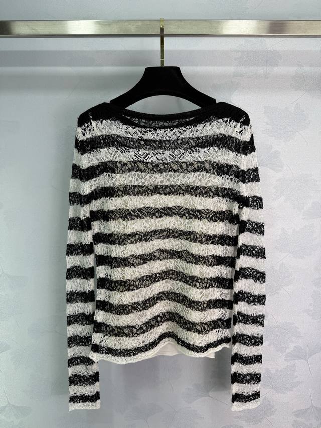 Dio* 25Fw Early Fall New Black and White Striped Blend Hollow Knit Long-Sleeve T
