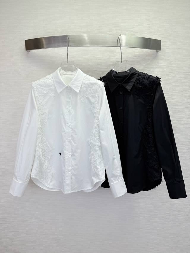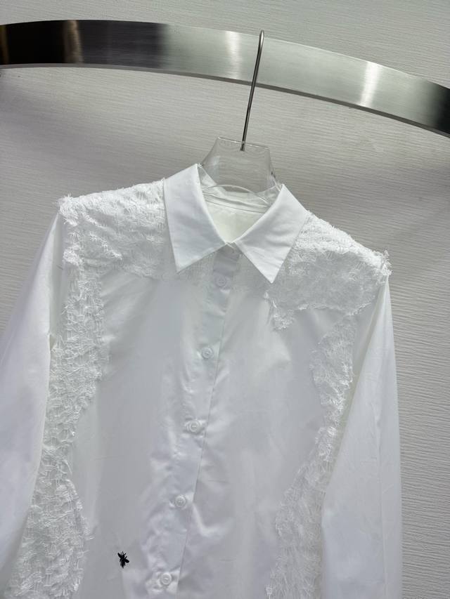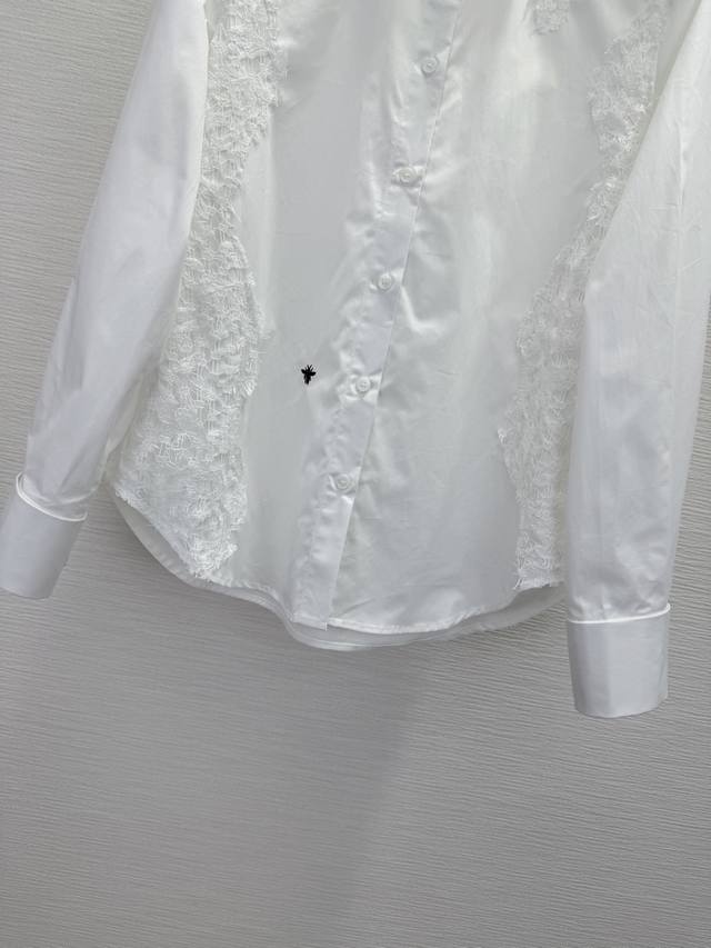 Dio* 25Ss Autumn/Winter New Long-Sleeved Shirt with Lace Trim and Embroidered Bee Design. Stylish and elegant, suitable for both inner and outer wear. High-quality, two colors, three sizes. Smlb808p. DDD