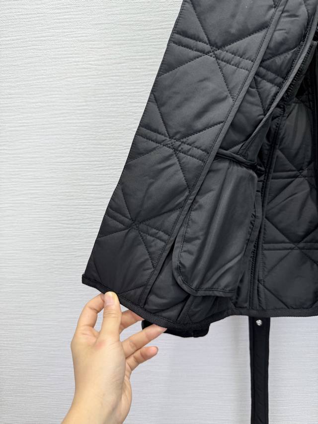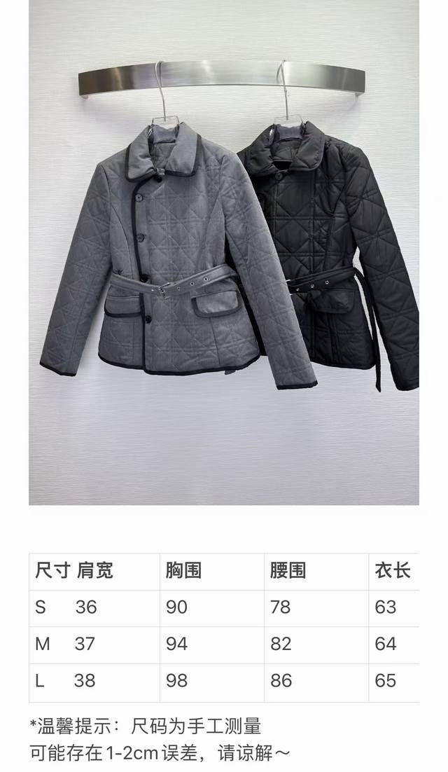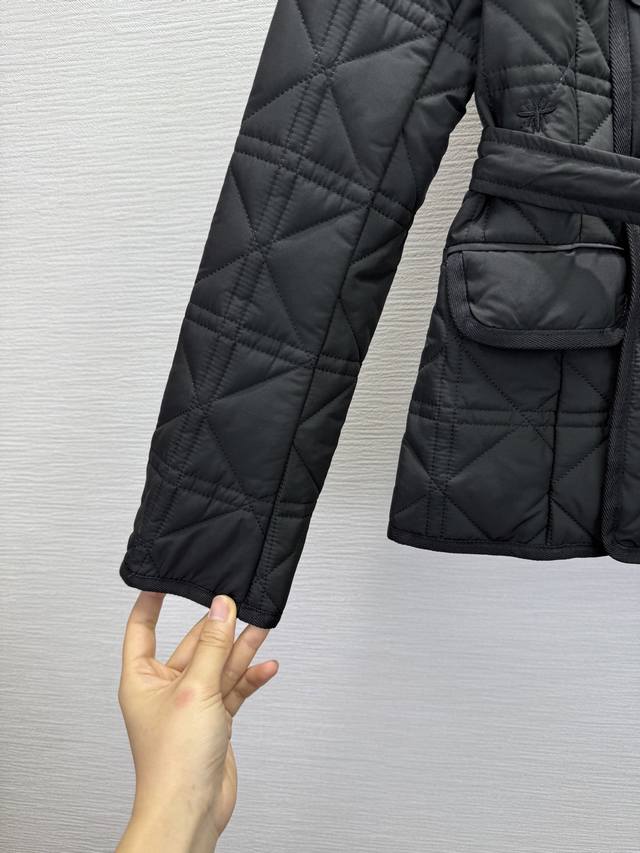 Dio* 25Ss Autumn/Winter New Style Lapel Cotton Jacket with Cannage Pattern, Small Bee Embroidery Decoration, Paired with Fabric Belt, Elegant and Warm, High Quality, Two Colors, Three Sizes Smlb808p DDD