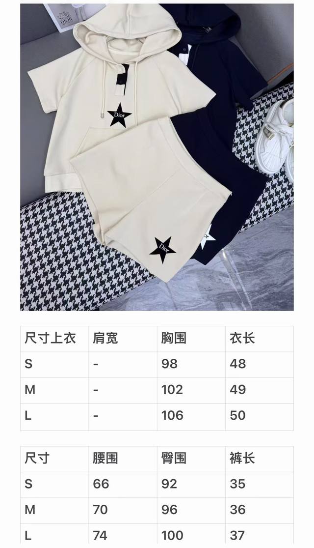 Dio* 25Ss new hooded short-sleeved top shorts set star flocking print decoration
