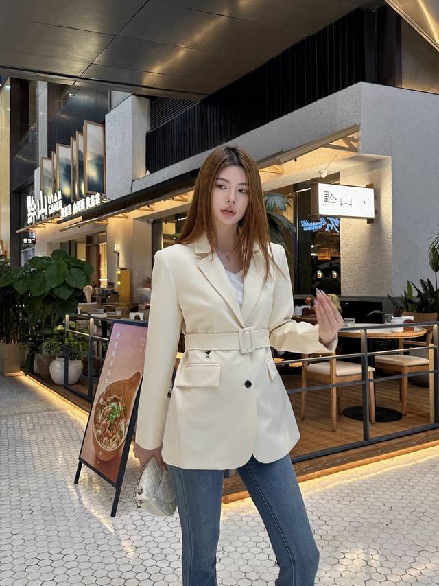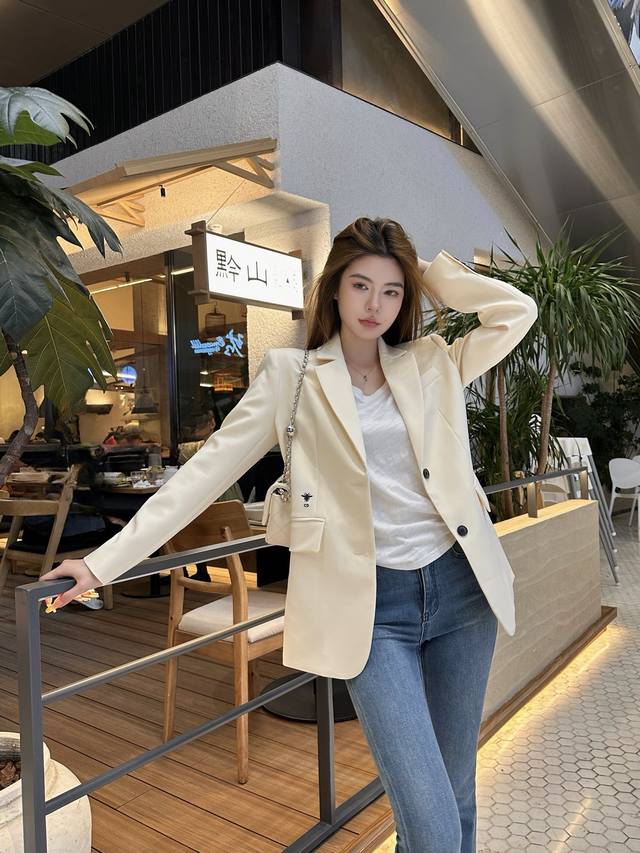 Dio* 25Ss new style suit jacket with bee embroidery decoration and matching belt, simple and elegant, high quality, two colors and three sizes Sml