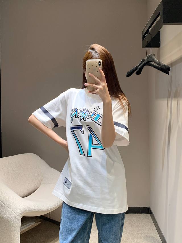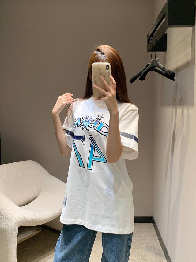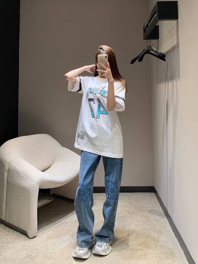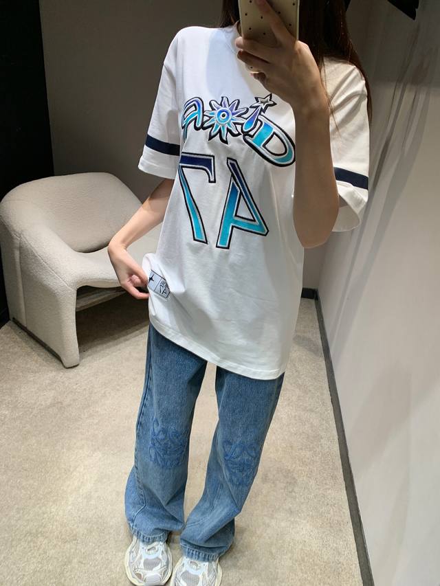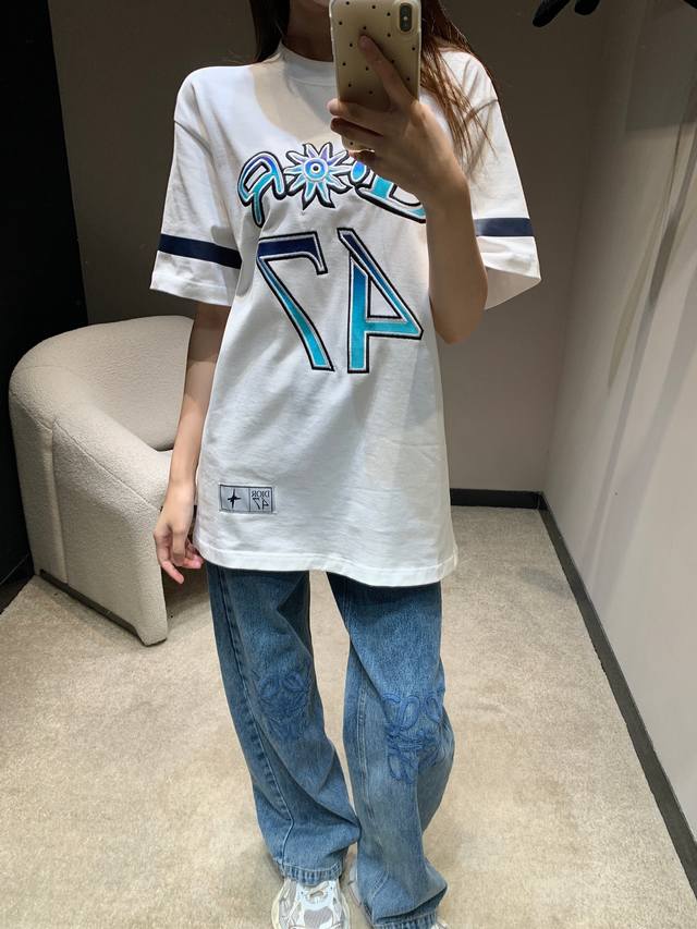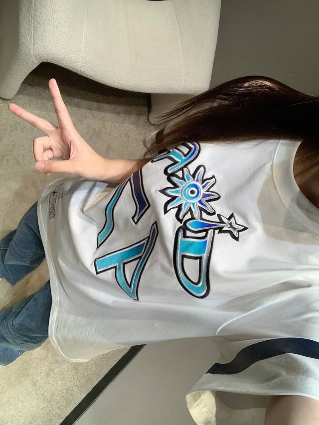 Dio* 25Ss Spring and Summer new Hamilton co-branded embroidered round neck short-sleeved T-shirt | Exclusive Yb development! High version! The front is decorated with brand logo and English pattern 47 embroidered plain weave, fluorescent prints on the cuffs, and patch badges on the hem. A versatile sports style short-sleeved, loose version for men and women. Available now SML