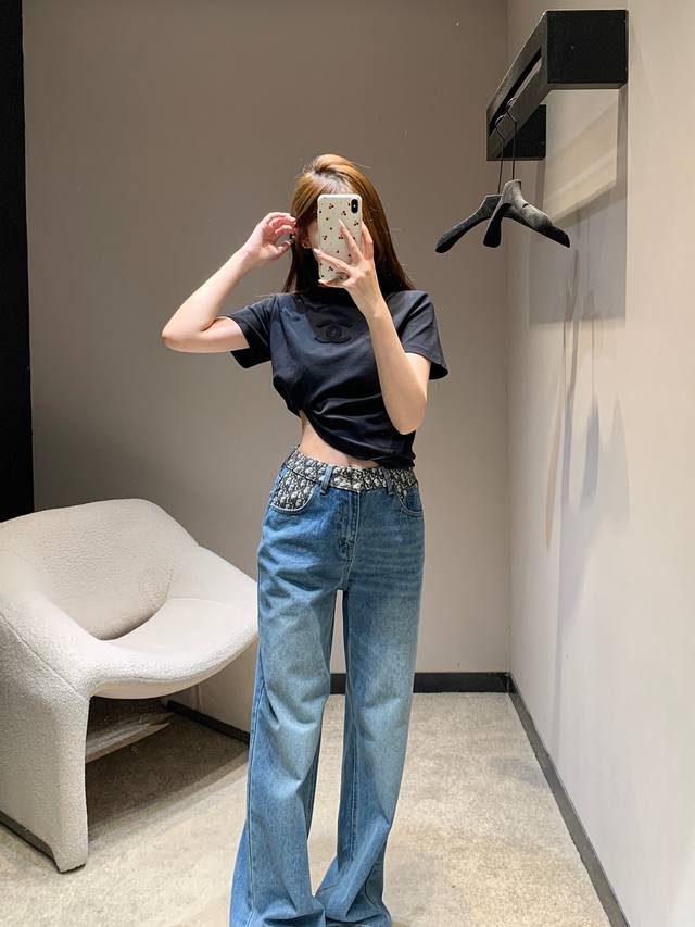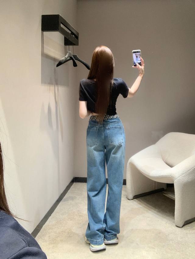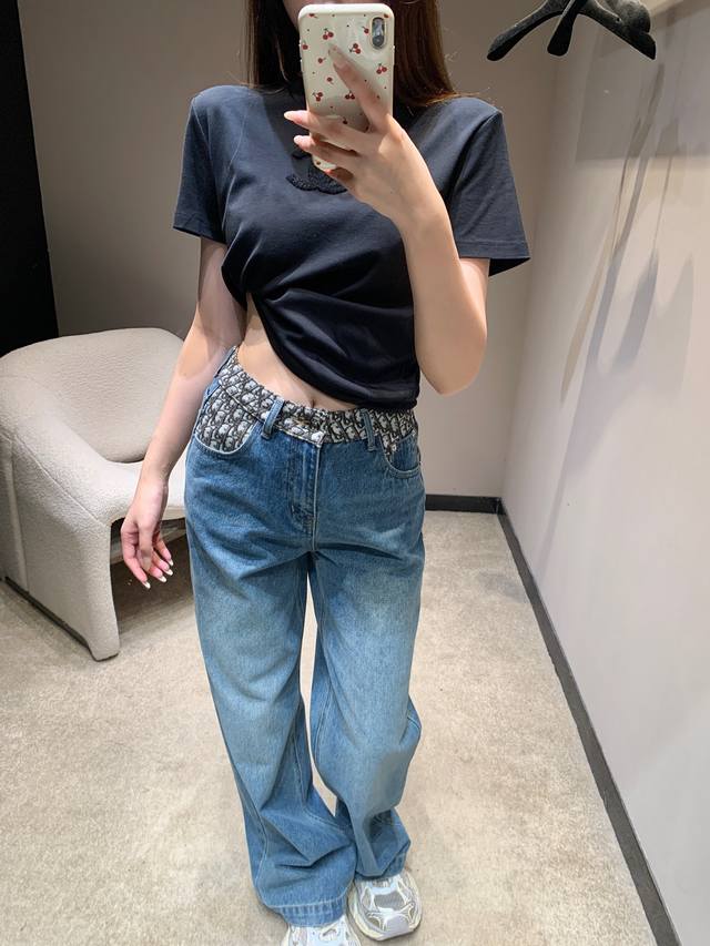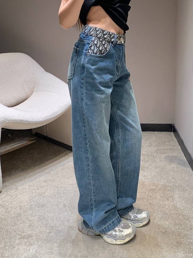 Dio* 26Ss Early Spring New Color-Blocked Straight Leg Jeans | Exclusive High-Fit Production! A perfect finishing touch for your spring outfits! Classic denim blue combined with a distressed wash gives it a retro feel; the monogrammed color-blocked design at the waistband is the highlight, perfectly blending the brand's signature elements with streetwear style, instantly drawing attention. The high-waisted cut and clean straight leg shape easily flatter your figure, concealing any unwanted curves and making you look taller, making it versatile for everyday wear or casual dates. Available now in sizes S, M, L, D.D.