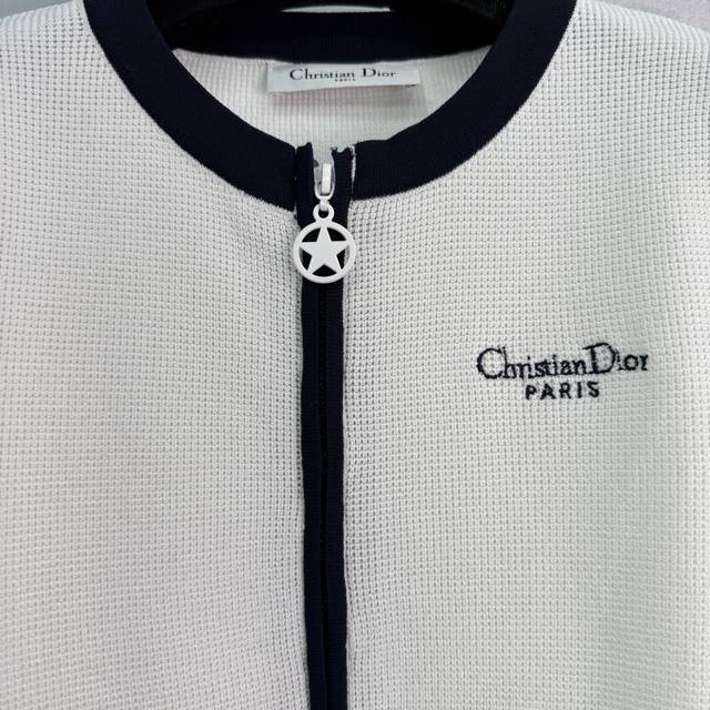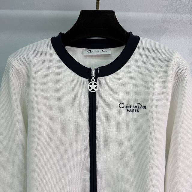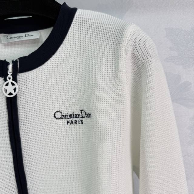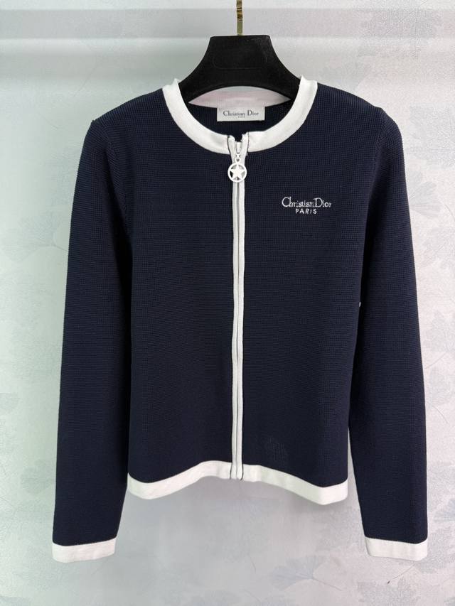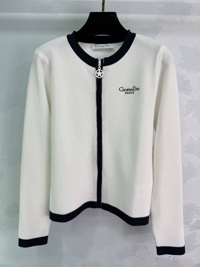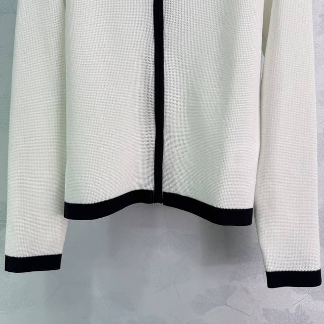 Dio* A black and white colorblock knit cardigan with a classic double zipper design and a small chest logo embroidery. The fabric is comfortable and textured. The black and white contrasting design is super slimming and looks great with skirts and pants. Available in 2 colors and 3 sizes (Sml).