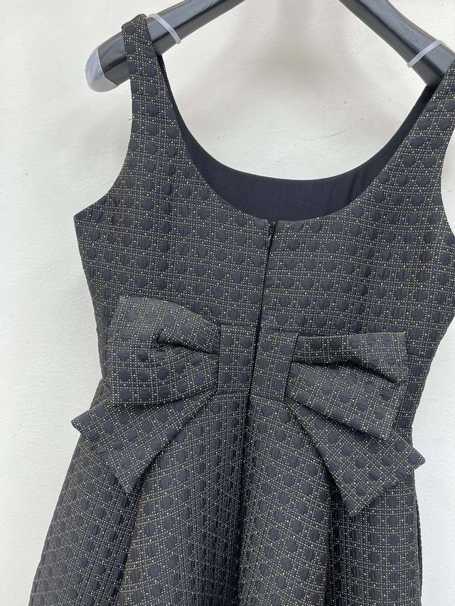 Dio* Autumn/Winter New Arrival: Hepburn-Style Black and Gold Sleeveless Mini Dress with Back Bow Design. The high-waisted design is incredibly flattering and makes you look slimmer. Perfect for important occasions, this dress exudes elegance. The custom-made fabric has a superb texture, and the entire skirt is generously sized with a three-dimensional feel. The bow design on the back is very eye-catching and also great for vacation photos. Sizes: S-XL, Aa. DDD