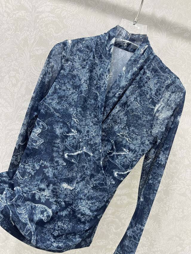 Dio* Dior's new early fall 25 collection, this jungle animal V-neck top is luxurious, soft, stretchy, and comfortable, creating a sophisticated look. The semi-transparent, innovative fabric is light and soft, and the look is fantastic! The tight, figure-flattering top is stylish and versatile, perfect even under a jacket! High-quality workmanship, detailed finishes, and 3 sizes (S, M, B,