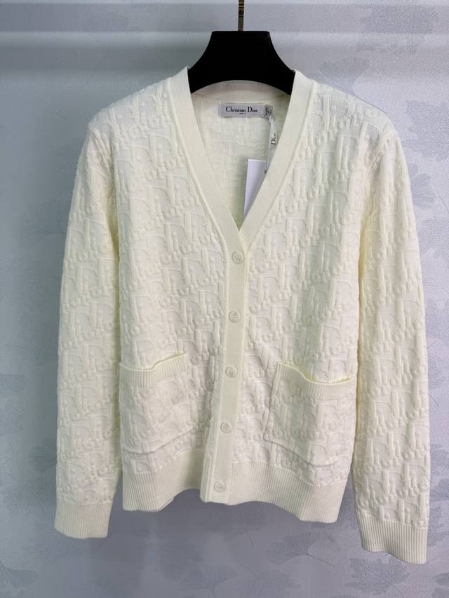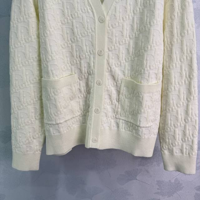 Dio* Letter jacquard V-neck cardigan in three colors! Soft and comfortable fabric, dropped shoulders for a slim fit, double front pockets and button accents for a versatile look! Available in all sizes, including SL. T226B