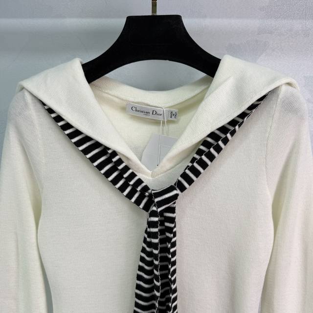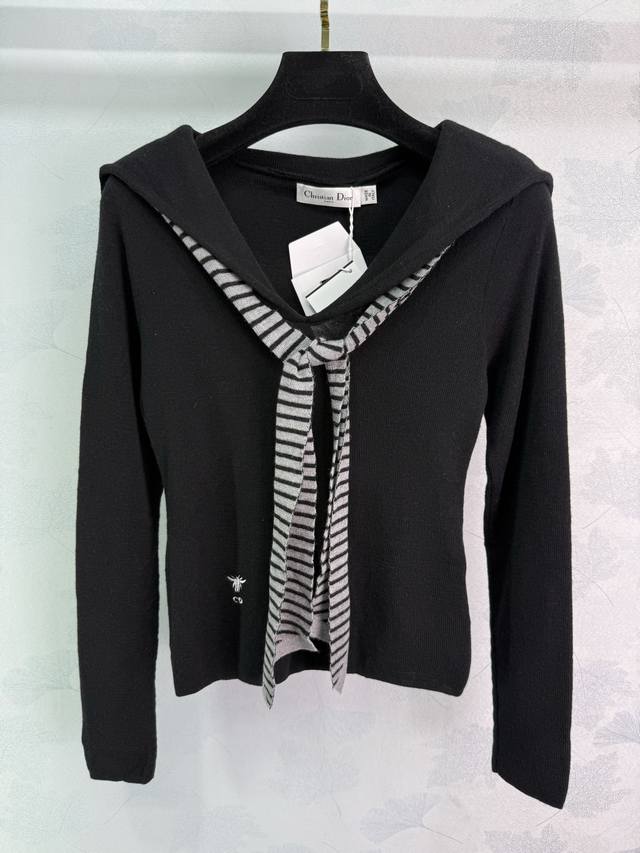 Dio* Navy-collar sweater, available in three colors, with a striped shawl design. The fabric is soft and comfortable. It's a slim fit and looks great with culottes or pants. Available in three colors and three sizes (S/M).