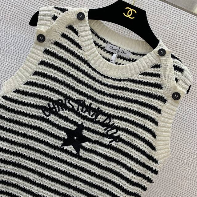 Dio* New banner logo letter embroidery logo button decoration knitted vest dress