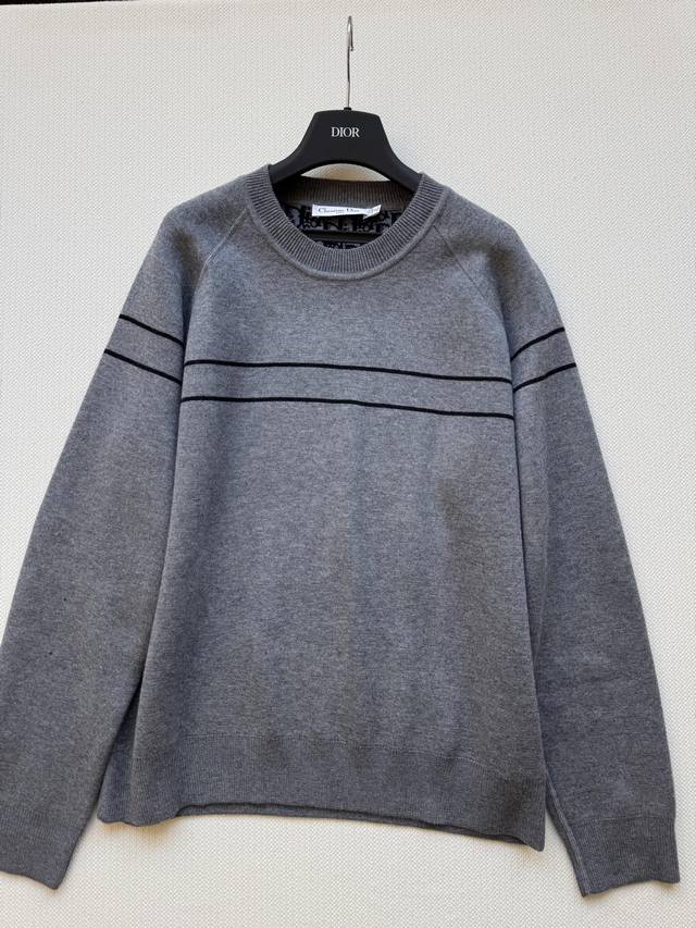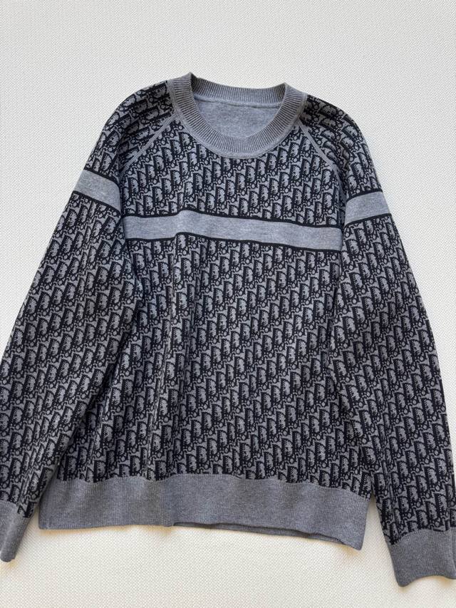 Dio* New, double-sided embroidered crewneck sweater. Woven from worsted cashmere, this worsted wool fabric has a smooth surface, crisp lines, and a tight texture. It's perfect for everyone. Heavy embroidery is available. High-end, versatile, and stylish. SML.