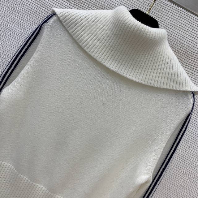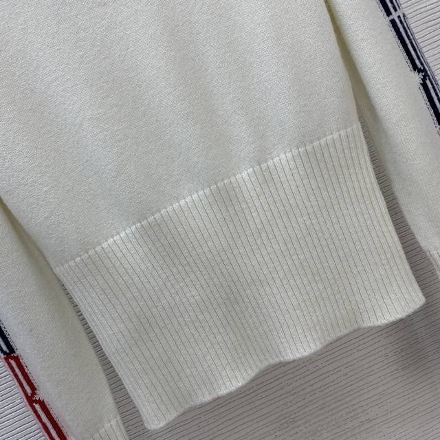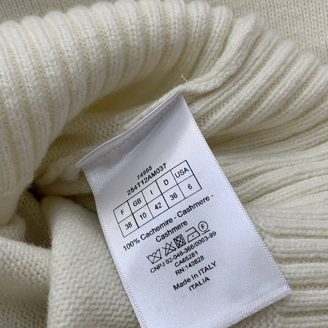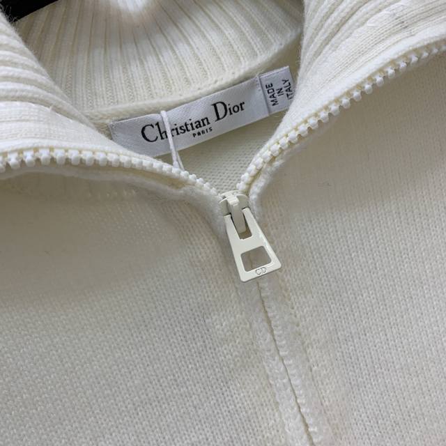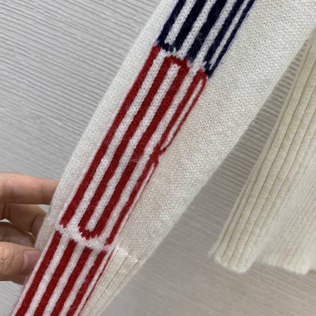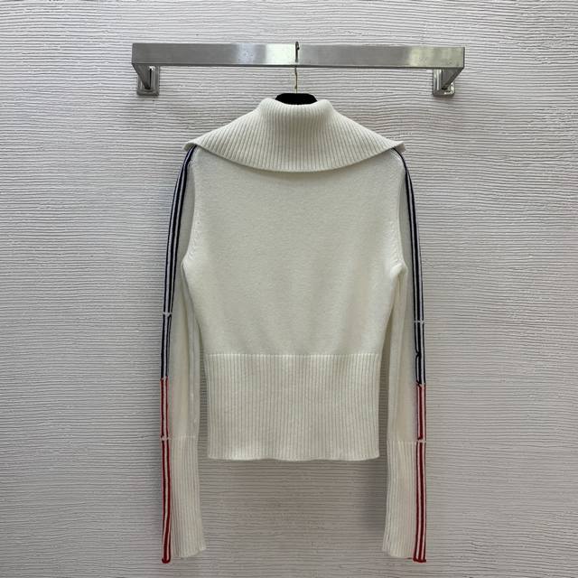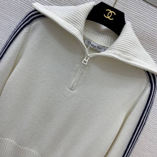 Dio* New High-End Custom 100% Cashmere Yarn Fabric, D Brand Skiwear Striped Color-Blocked Sleeves Zippered Large Lapel Slim Fit Pullover Long-Sleeved Knit Top! Off-White, Sizes 36, 38, 40. Size 38: Bust 88cm, Raglan Sleeve 76cm, Length 57cm.