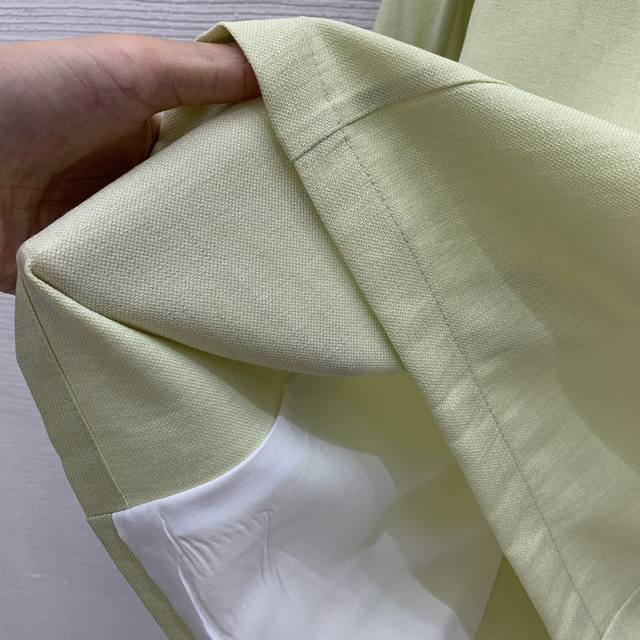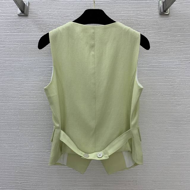 Dio* Summer New High-End Custom Thin Linen Fabric! Elegant Commuter Fashion Three-Piece Set! Slim Fit One-Button Pleated Short-Sleeve Blazer, Slim Fit Single-Breasted V-Neck Vest, Elastic Pleated Wide-Leg Trousers! Fresh Green,
