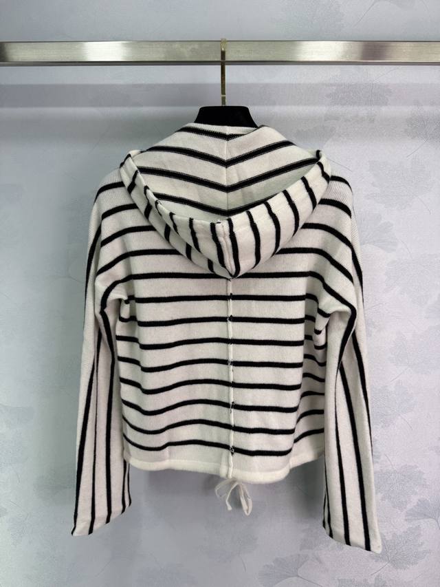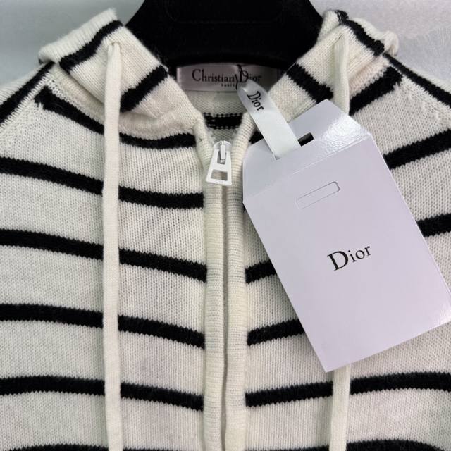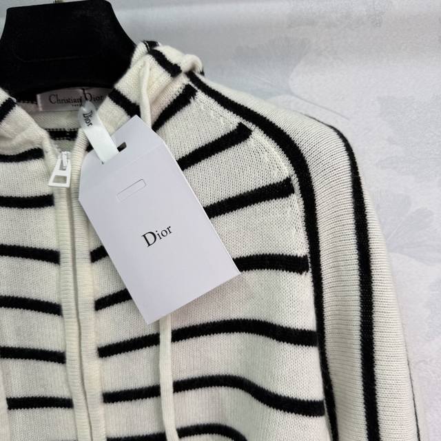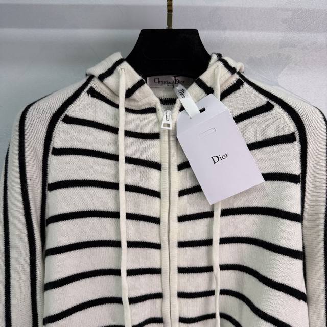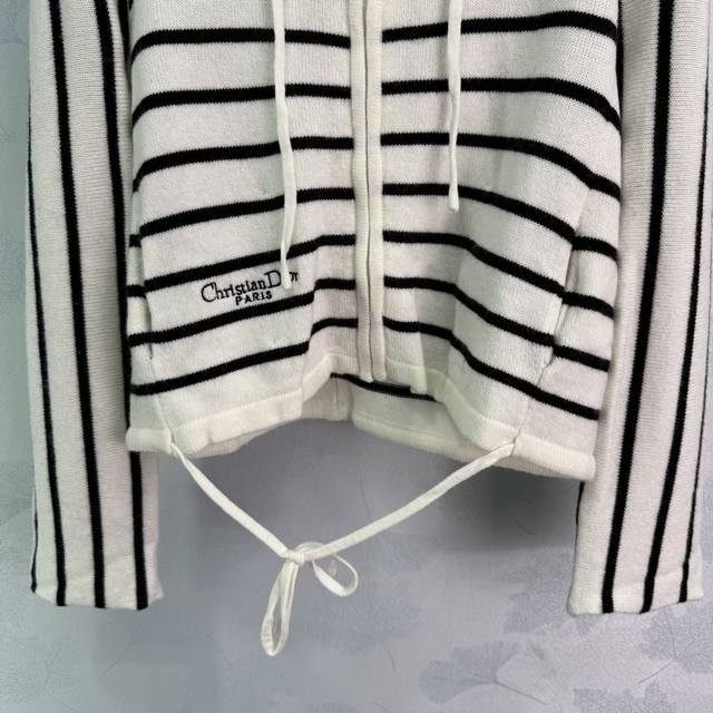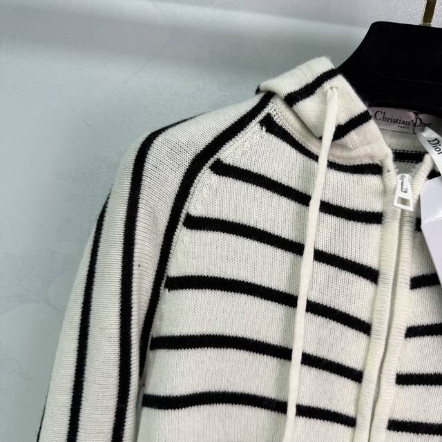Dio*2025 Early Autumn New Black and White Striped Hooded Cardigan Classic Striped Design Color Matching Zipper Cardigan Style Hooded Drawstring Design Letter Embroidery on the Right Side Highlights Brand Personality Highlights Highlights Highlights Highlights Relaxed Tone Light Luxury Fashionable Temperament Can Be Worn Alone or Layered Highlights in All Seasons! 1 Color 3 Sizes Sml