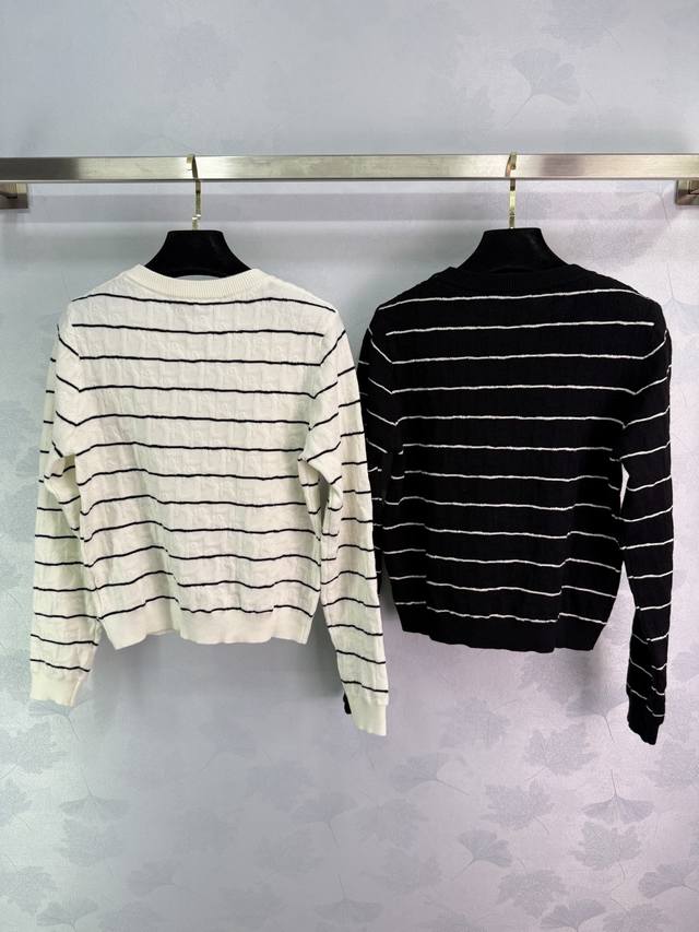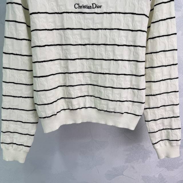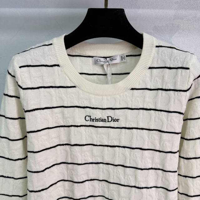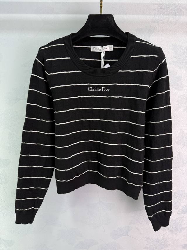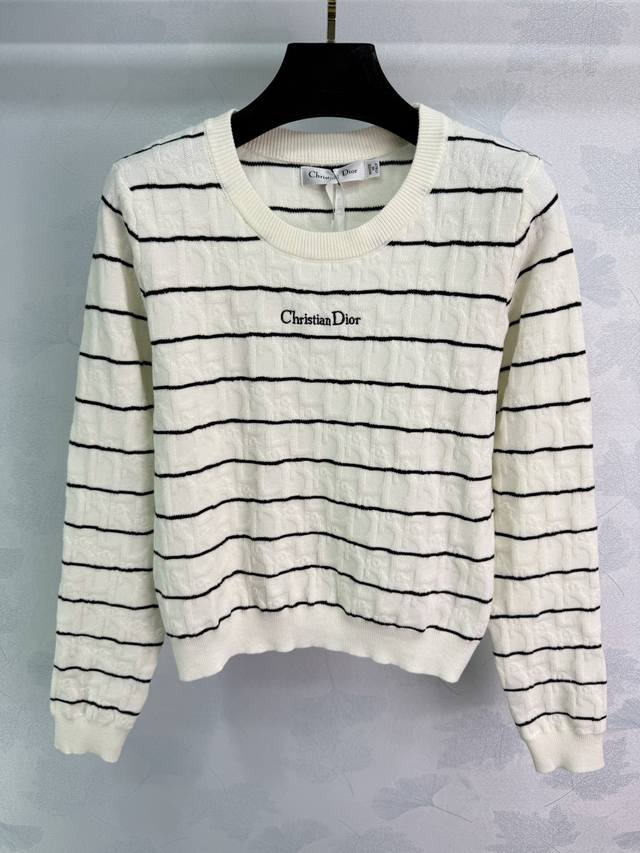 Dio*2025 Early Autumn New Round Neck Striped Long-Sleeve Knit Top! Made with custom wool yarn, the texture is delicate, comfortable, and easy to wear. The pullover long-sleeve top features a ribbed cut that flatters the head and shoulder proportions for a slimmer look. Two-tone stripes throughout, with an embroidered logo on the chest adding a touch of sophistication and visual appeal. Perfect for everyday wear or parties! Available in 2 colors and 3 sizes: S, M, L, D, D.