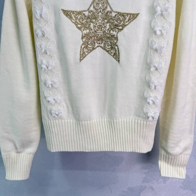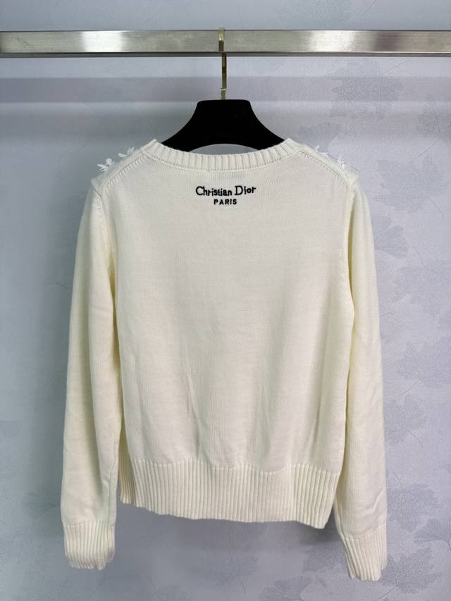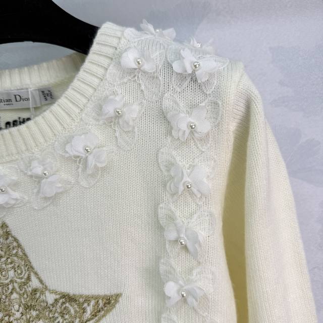 Dio*2025 Early Autumn New Style 3D Butterfly Long-Sleeved Pullover Sweater! Made of custom wool knit material, soft and comfortable. The round neck and long sleeves are tailored with a neckline extending to the hem. The 3D butterfly decoration, combined with embroidered gold five-pointed stars, creates a rich and harmonious forest-style pattern. The letter logo on the back adds a touch of ethereal elegance. The unified and coordinated design is full of style, making it perfect for wearing alone or layering. Available in 1 color and 3 sizes: S, M, L, D, D.