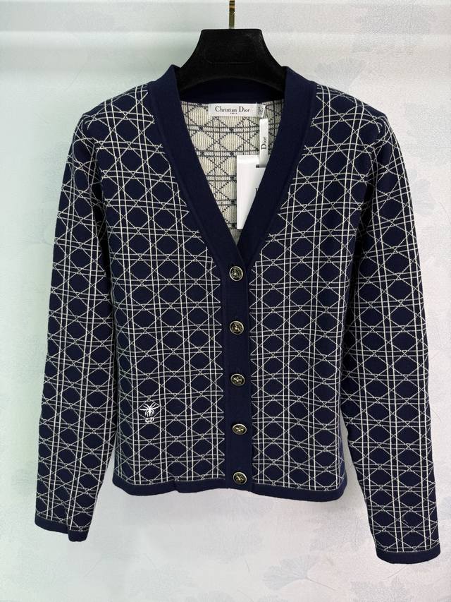 Dio*2025 Early Fall new contrasting diamond quilted V-neck knitted cardigan! Custom-made wool knit for a soft, comfortable feel. Classic diamond quilted design elements, simple, high-end custom-made, and branded metal buttons perfectly capture the iconic, eye-catching, and luxurious look! The fit is flattering and versatile, making it a must-have! 2 colors, 3 sizes Sml T226B