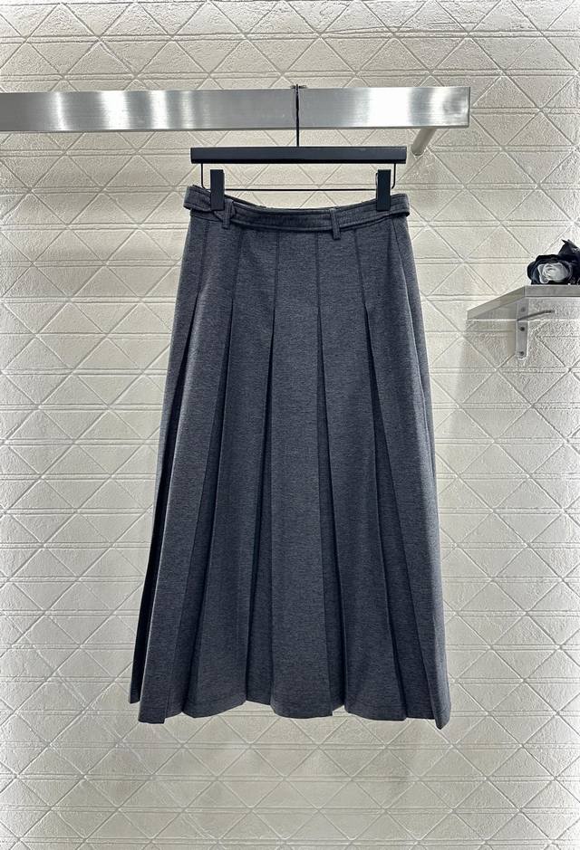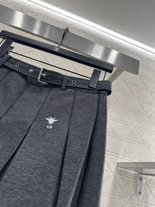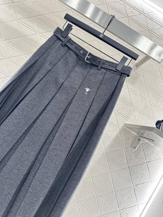 Custom Yb Imported Material, Textured and Lustrous, Smooth and Comfortable, High-Waisted Pleated Skirt, Neat Pleats Combined with an Over-the-Knee Silhouette, Adorned with a Perforated Belt at the Waist, and a Bee Cd Embroidered Logo Showcasing Brand Style, This Preppy and Youthful Skirt, with a Thoughtfully Designed Mid-Length, Reveals a Slim Waist and Ankles, Showcasing a Sophisticated and Elegant Look. Custom Fabrics and Accessories, High-Quality Version, 2 Colors