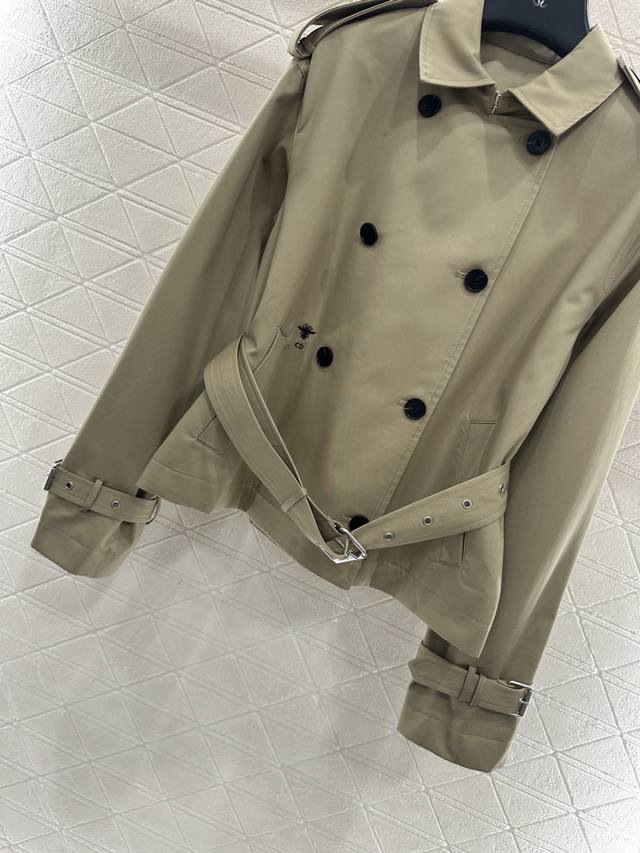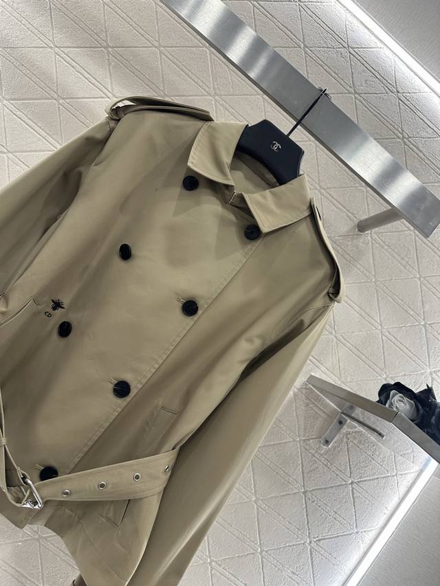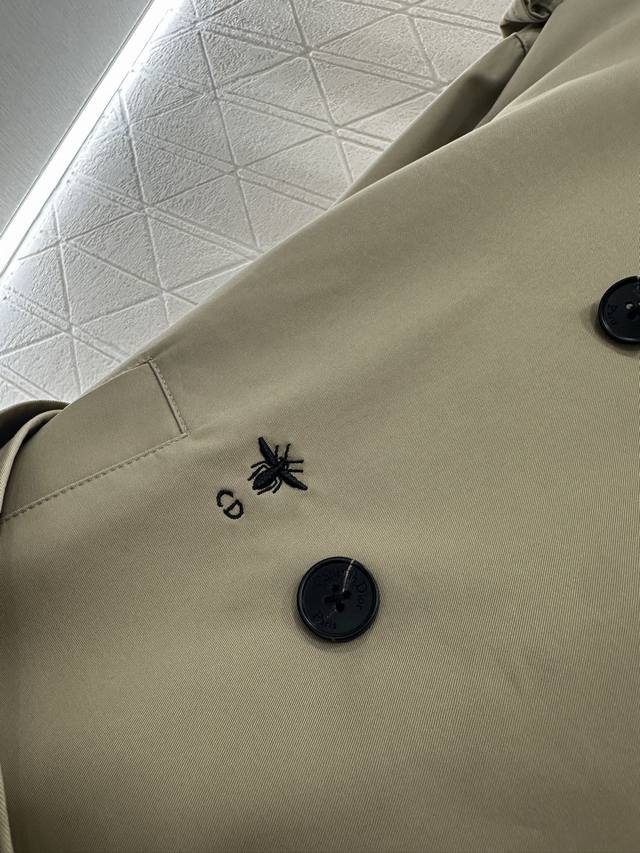 Double-Breasted Classic Trench Coat with Lapel. Made of custom Yb twill cotton, this trench coat is crisp, stylish, and high-quality. The double-breasted design enhances its layered look, while the adjustable cuffs and belt accentuate the waist. The double shoulder straps add a touch of elegance, and the layered lines create a sophisticated style. A bee embroidery adorns the collar, and the brand logo adds a touch of understated luxury. A must-have for autumn and winter, combining fashion and practicality, this coat exudes British elegance. Custom fabrics and accessories are available in high-quality versions.