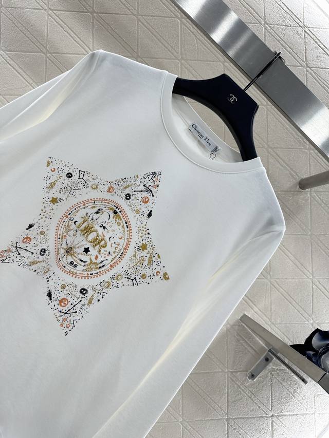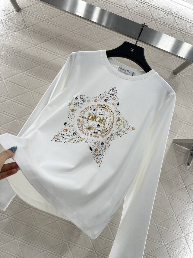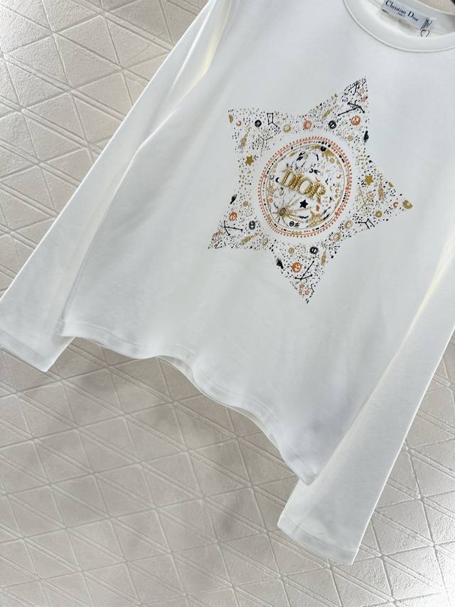 Custom Yb twill cotton material, comfortable texture, stretch and comfortable wear. The round neck long-sleeved top is tailored, and the chest is embellished with a full rhinestone letter logo with beading craftsmanship. The outer contour is decorated with irregular sequins combined into a five-pointed star pattern. The vibrant black, white, brown and yellow color scheme adds a playful touch. The regular fit is energetic and refreshing, making it a great choice for inner wear or outer wear in autumn and winter. Custom fabrics and accessories are available in two colors.