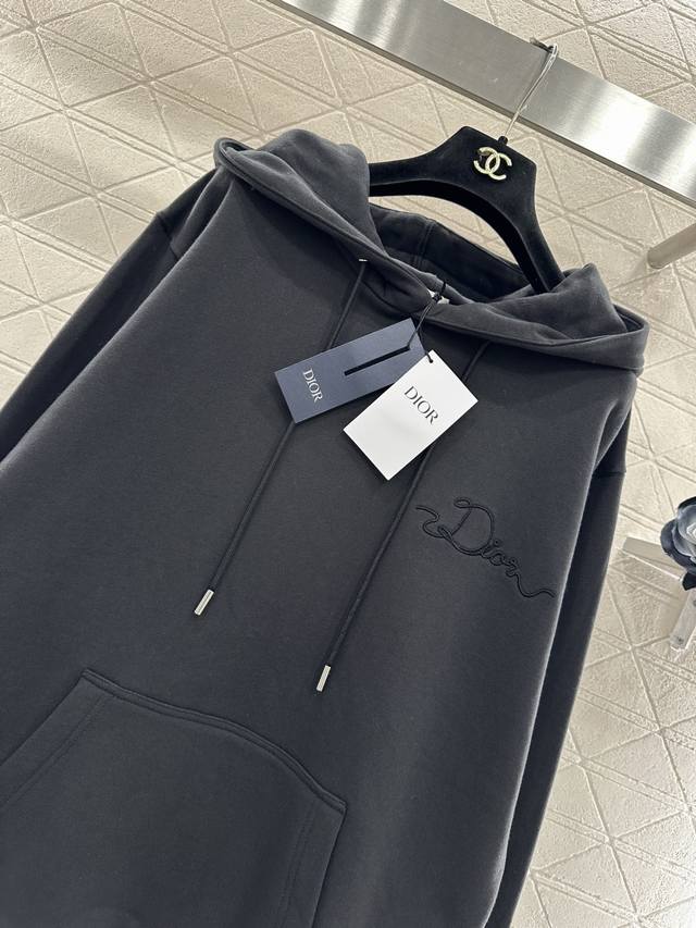 Dio*2025 New Arrival DDD Fleece Embroidered Letter Hooded Sweatshirt DDD Custom Yb 100% virgin cotton material, high-quality feel, comfortable and easy to wear. Hooded drawstring sweatshirt design, embroidered letter logo on the chest, with matching details on the back. 3D embroidered crochet adds visual richness and showcases a fashionable style. The fleece-lined, loose fit is unisex, exuding a strong boyfriend vibe and embracing gender-neutral style. Custom fabric and accessories, high-quality black and gray. DDD