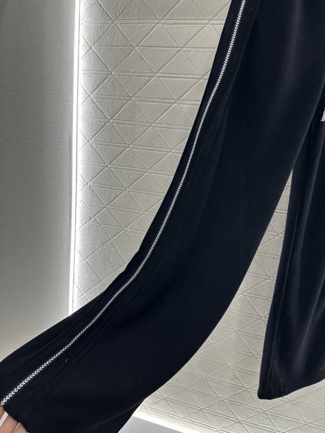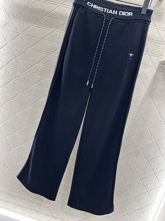 Custom Yb Imported rayon material, soft and comfortable fabric with a delicate luster. The high-waisted cable-knit drawstring wide-leg pants feature a three-dimensional cut that flatters the figure, making legs appear longer and slimmer, with a relaxed and fashionable style. Embroidered bee Cd embroidery on the hips, along with the iconic logo on the waistband, instantly elevates the brand's style, creating a high-street chic look. The side drawstring effectively lengthens the leg line. A versatile pair of pants suitable for all seasons, perfect for vacations, dates, and everyday wear. Custom fabric and accessories, high-quality version, 2 colors.
